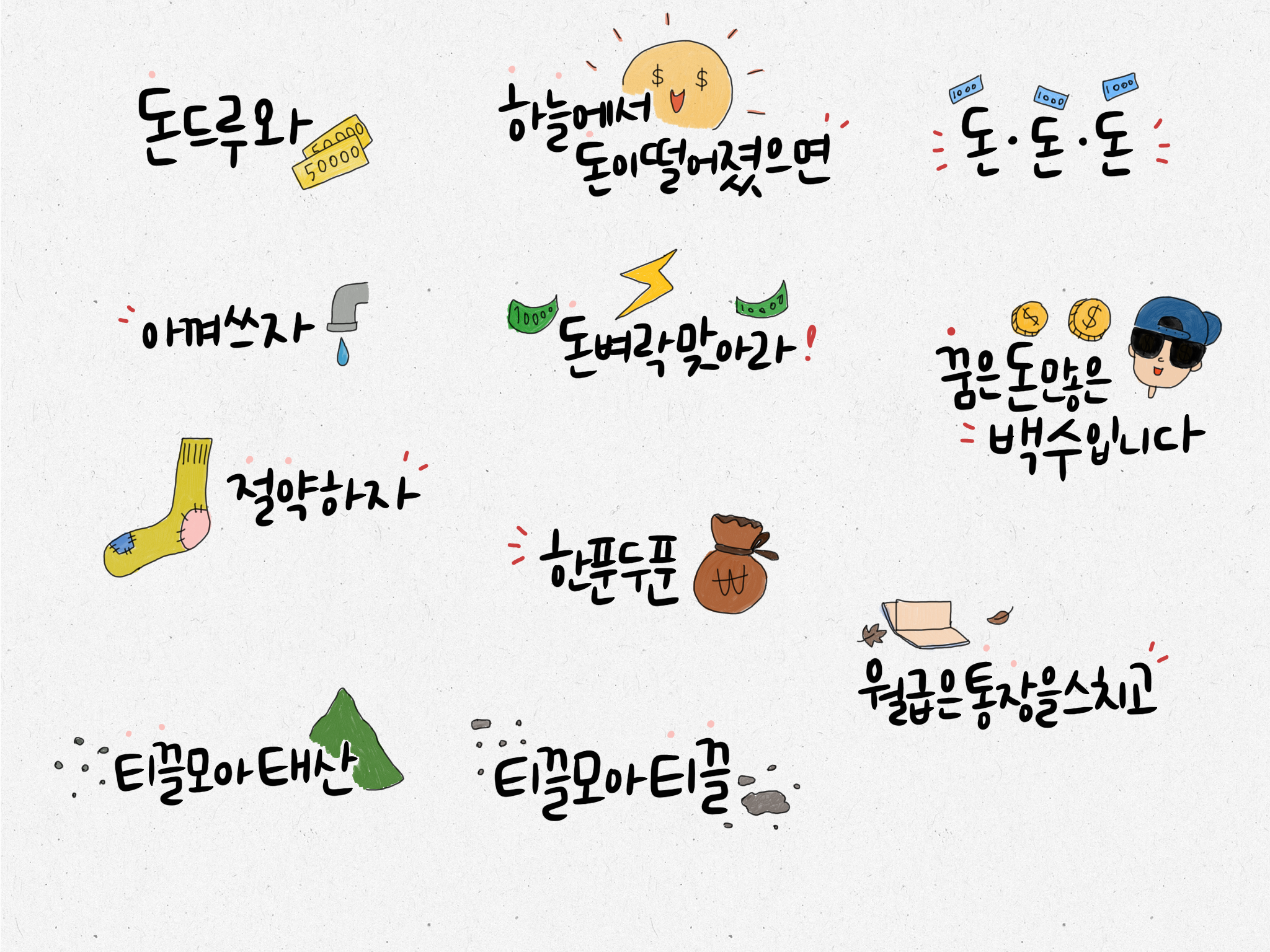 아이패드 드로잉 어플 프로크리에이트라는 프로그램으로 그려보았어요. :) 글씨를 쓰다보니 글 안에 본심이 많이 담겨있더라고요. ㅋㅋㅋㅋ 여러분들 스티커 붙이면서 돈도 많이 버시길 바라겠습니다 !