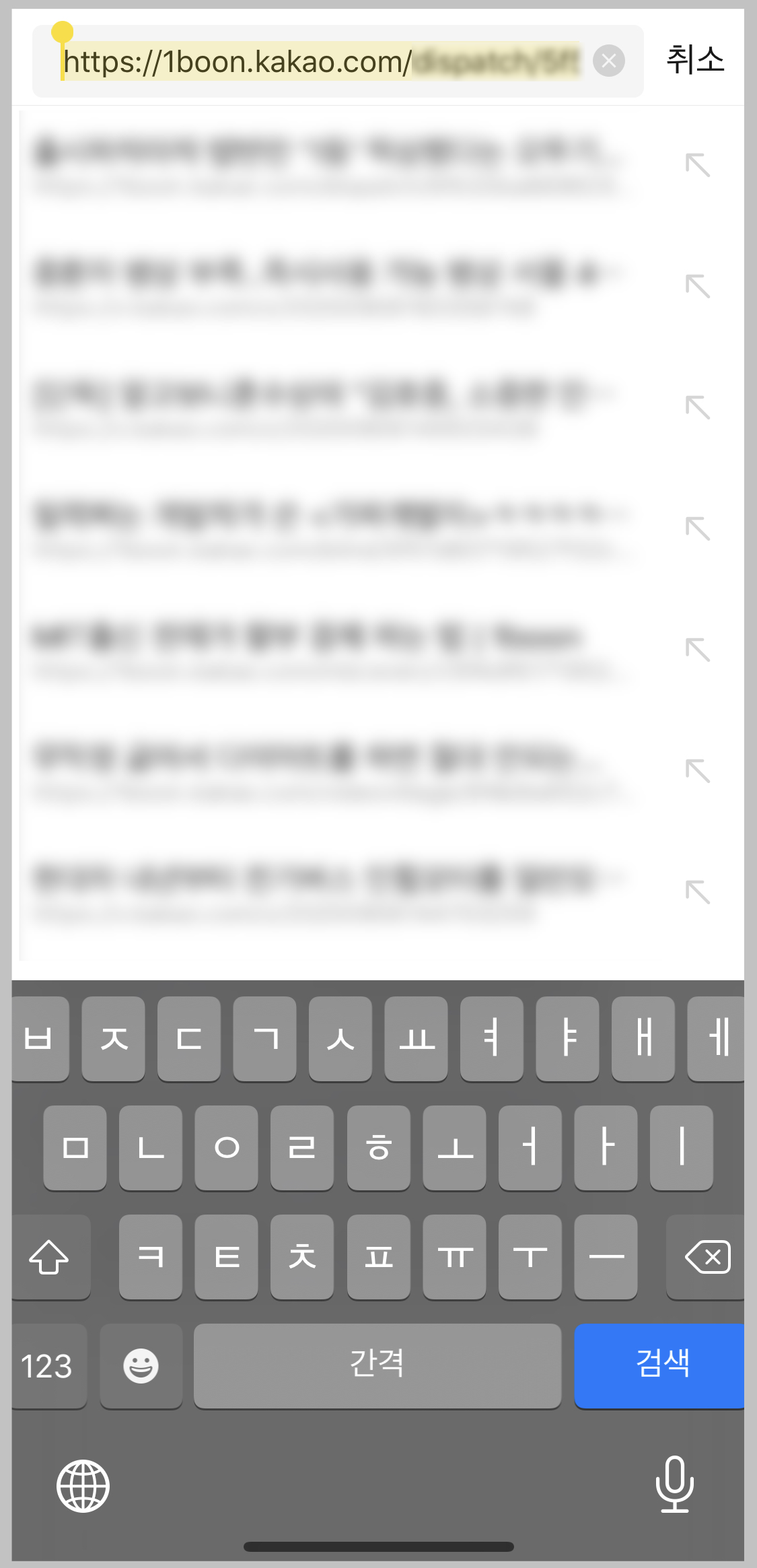 ▼ 페이지를 클릭하면 아래와 같이 페이지 상단에 주소창이 나옵니다. 이 주소창을 터치해주세요.