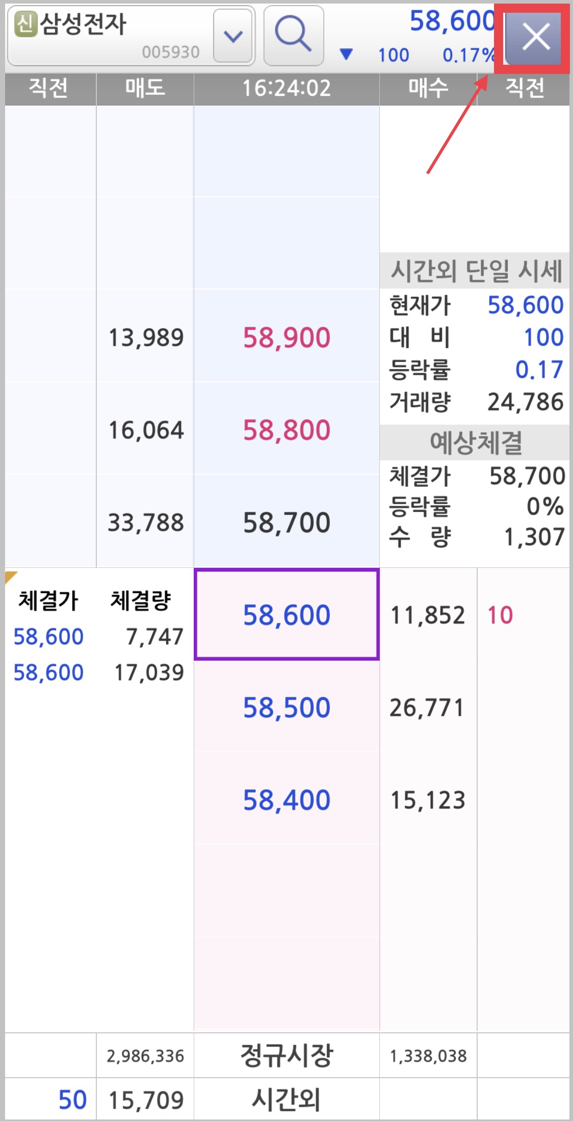 단, 시간외 거래는 예상 체결 금액이 바뀌기 때문에 거래가 되지 않을 수 있습니다.