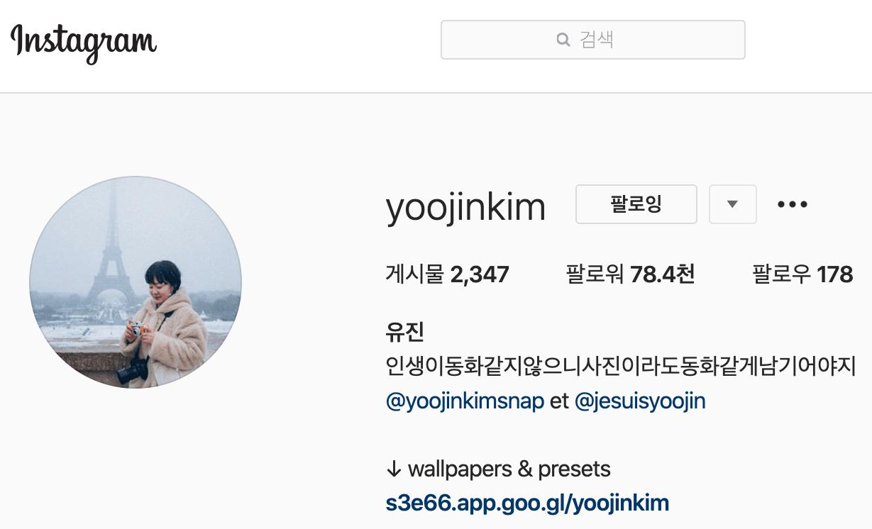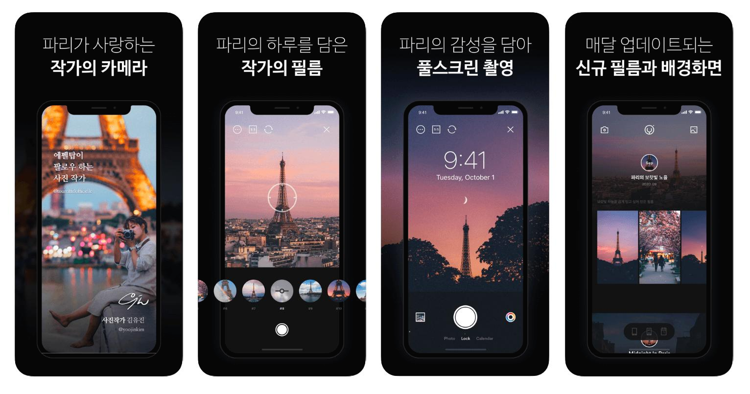 이 카메라 어플의 필터는 인스타에서 유명한 사진 작가님 '유진'님의 감성을 녹여 만든 필터였습니다. 인스타에 들어가보니 사진들이 하나 같이 취향 저격이었습니다. 마치 파리에 온 것 처럼 낭만이 느껴졌습니다. 물론 파리는 가본적이 없습니다.