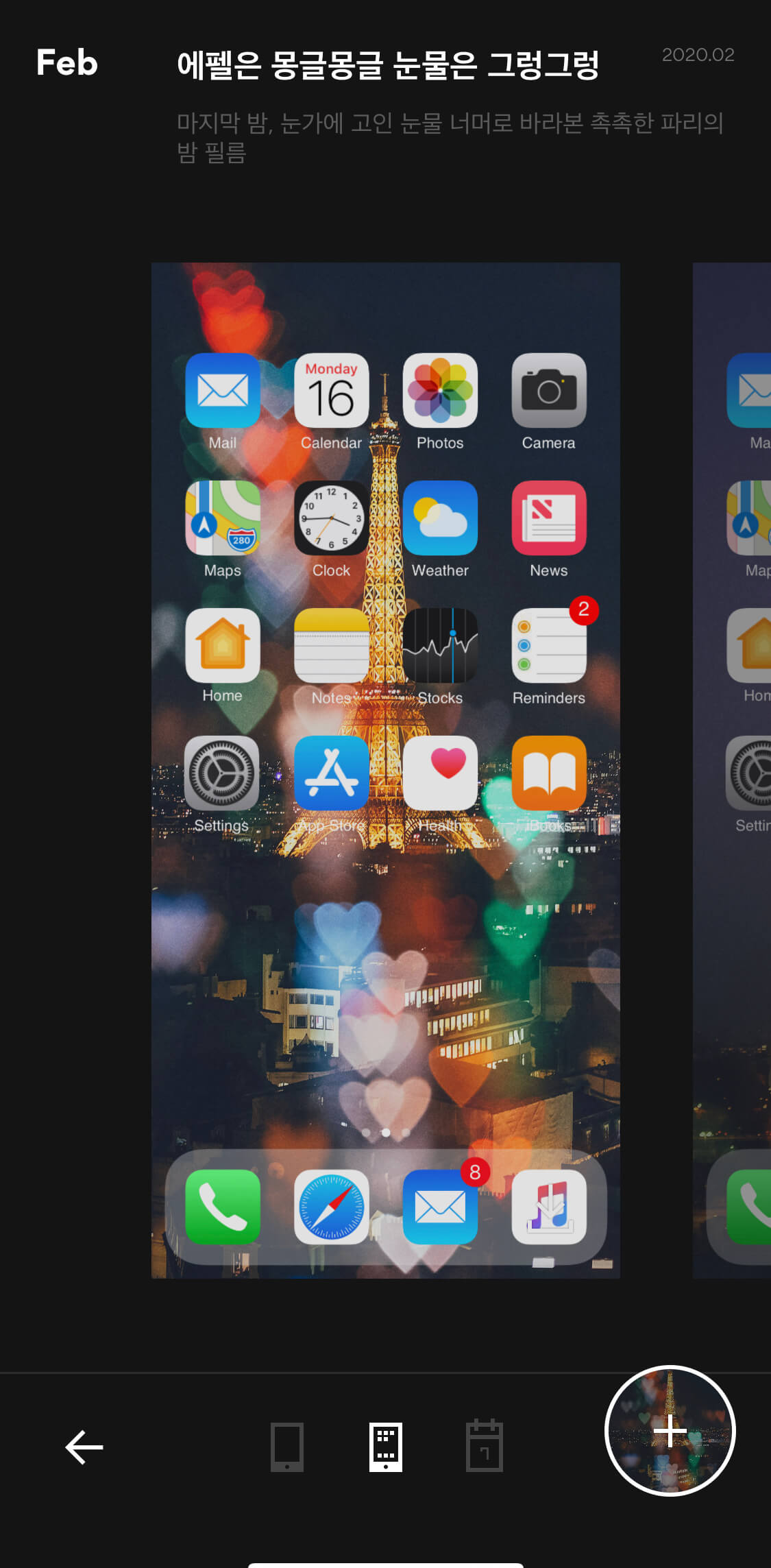 과하지 않은 느낌으로 사진을 감성 넘치는 분위기로 만들어주는 어플인 것 같습니다. 파리 배경화면을 제공해준다는 점이 굉장히 매력적입니다. 덕분에 제 핸드폰의 배경화면도 함께 고급스러워진 느낌입니다.
