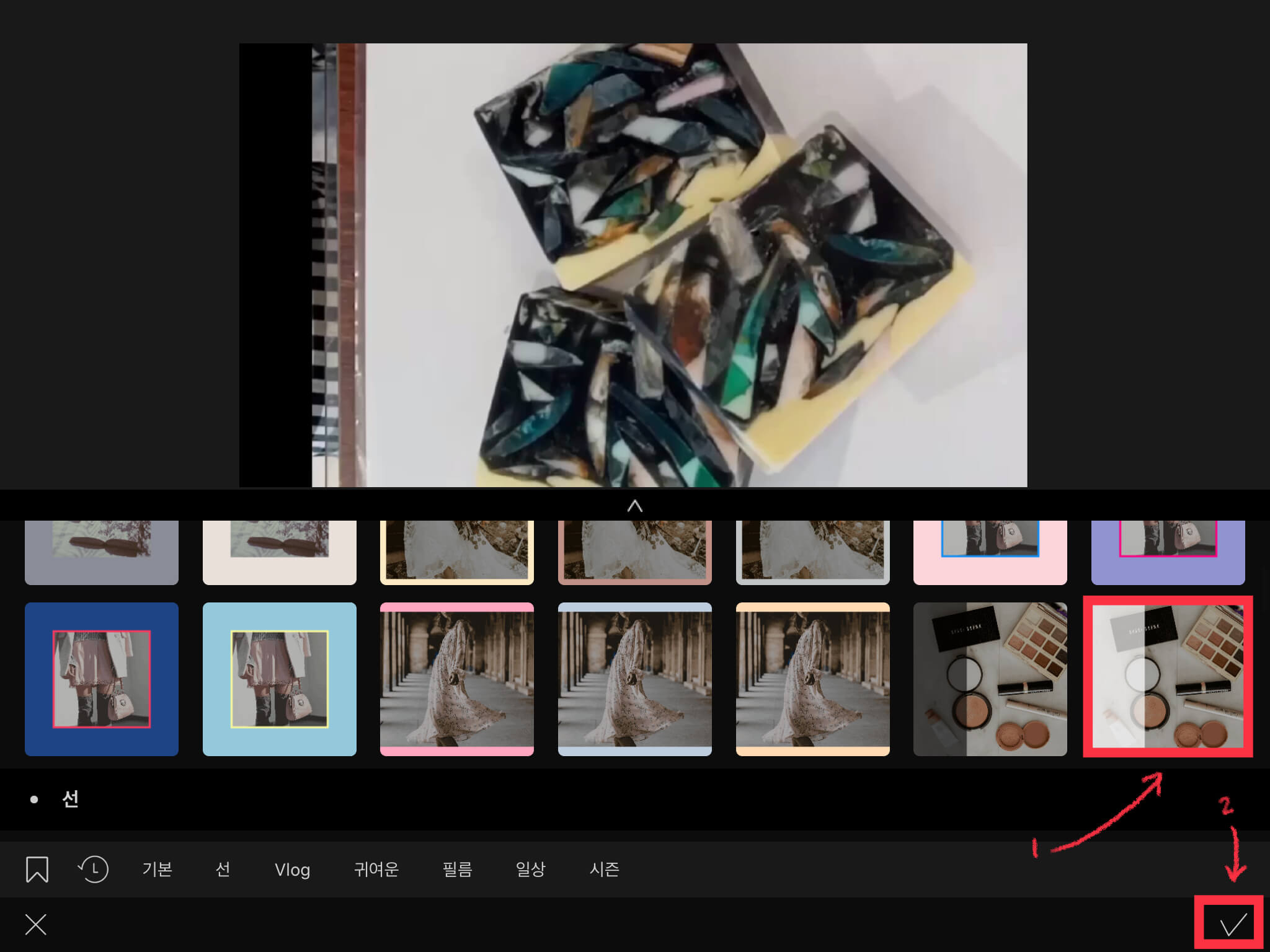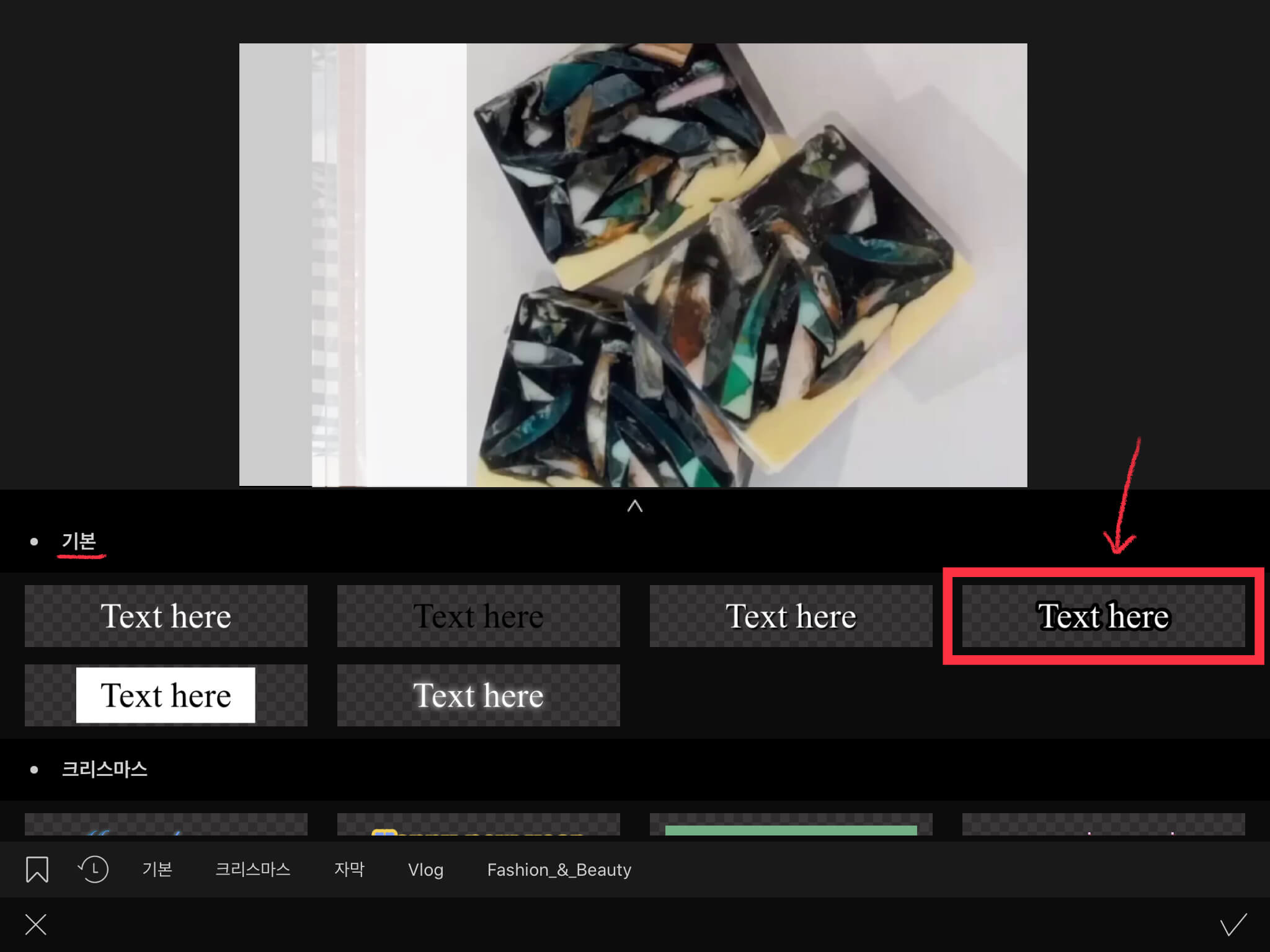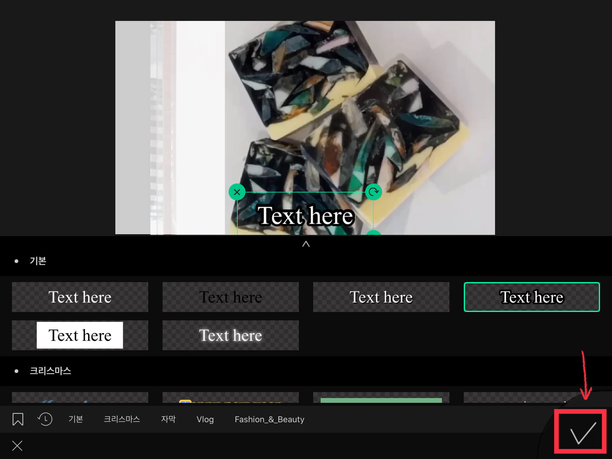 ▼ 글씨가 눈에 띌만한 프레임을 선택합니다. 그리고 아래에 있는 체크 버튼을 눌러주세요.