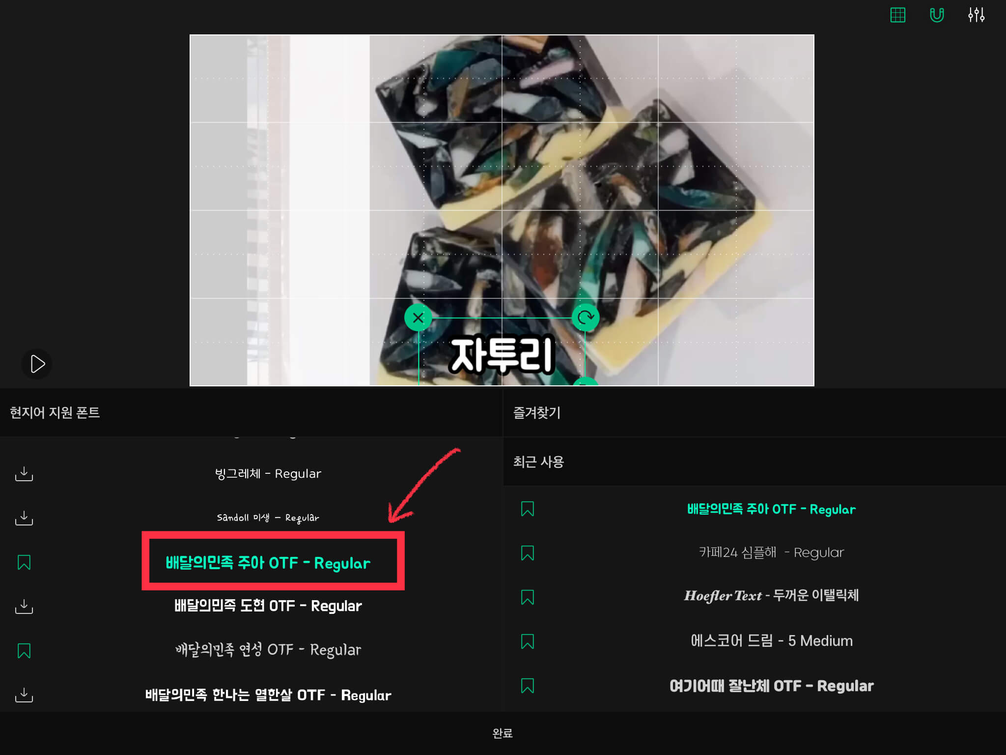▼ 썸네일로 사용하면 좋은 [배달의민족 주아 OTF - Regular]를 선택합니다.