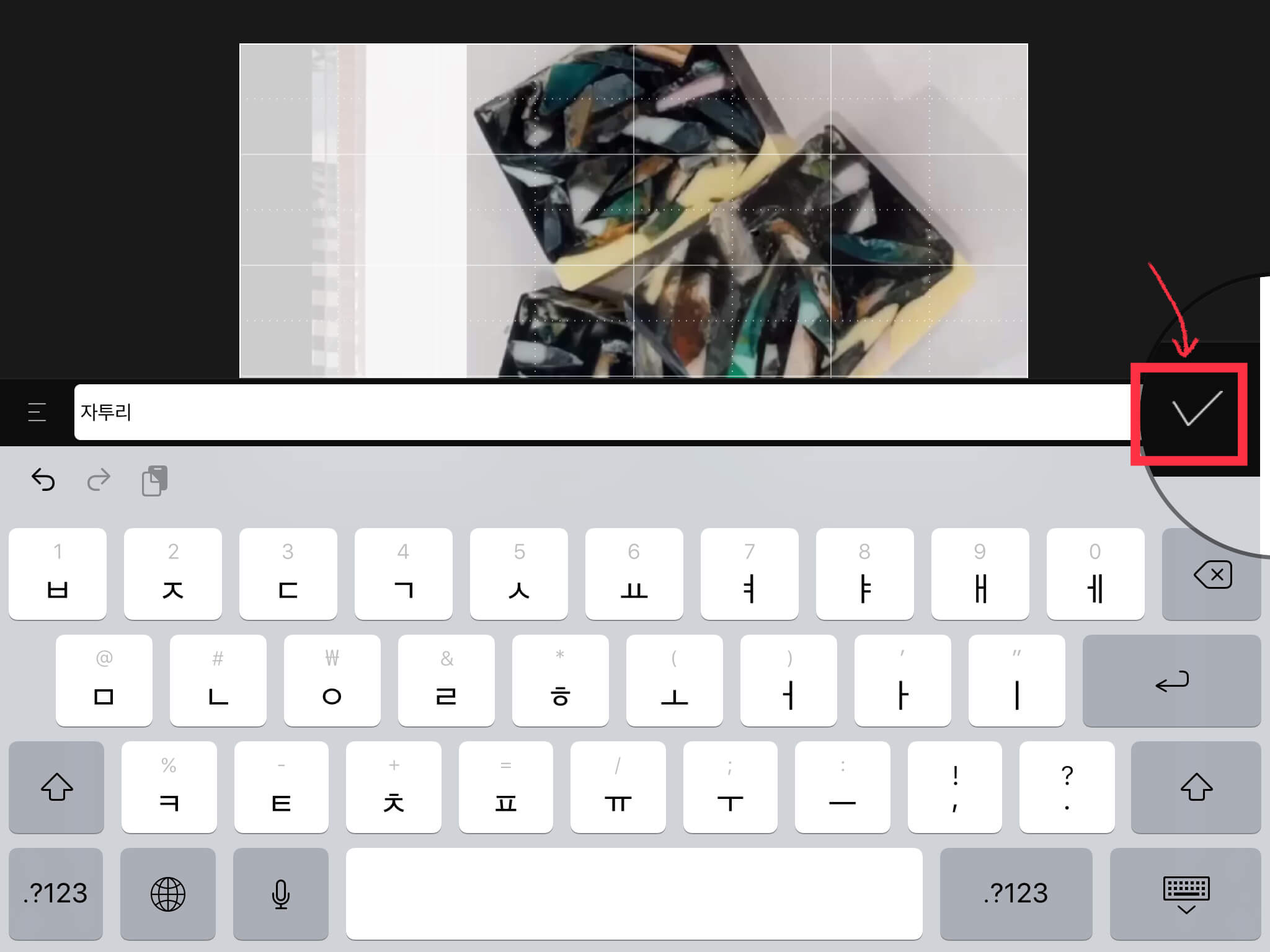 ▼ 원하는 글자를 적어준 뒤, 오른쪽의 체크 버튼을 눌러주세요.