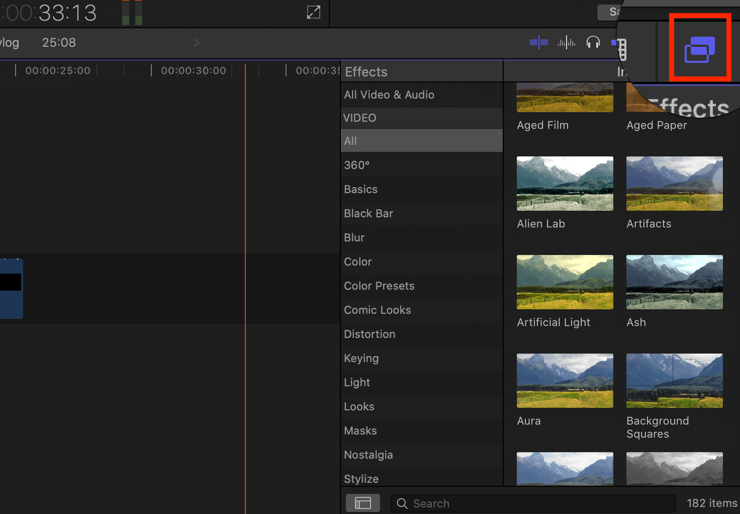 ▼ 오른쪽 아래에 있는 사각형 두 개가 겹쳐있는 메뉴(Effects) 창을 클릭해주세요.
