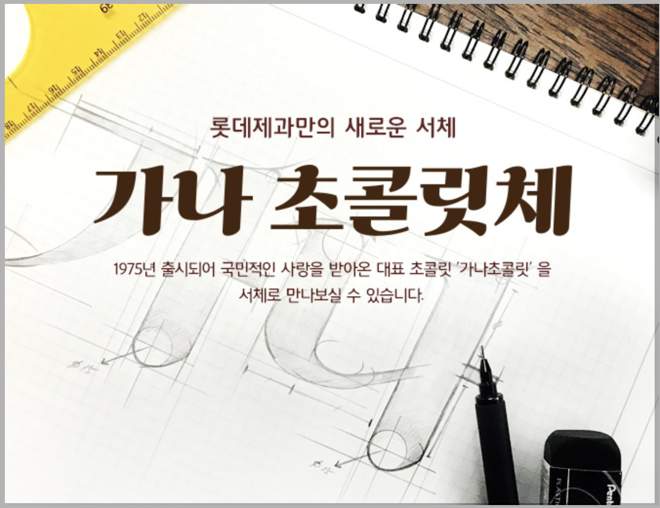 우리에게 익숙한 가나 초콜릿에 적힌 폰트라서 더욱 정감이 가는 느낌입니다. 레트로 느낌이 나면서도 세련된 폰트인 것 같습니다. 주요 디자인 테마는 초콜릿을 부러뜨릴 때의 경쾌한 느낌과, 입속에 넣었을 때 느껴지는 부드러운 맛이라는 두 상반된 느낌을 동시에 담아내는 것이 목표였다고 합니다.