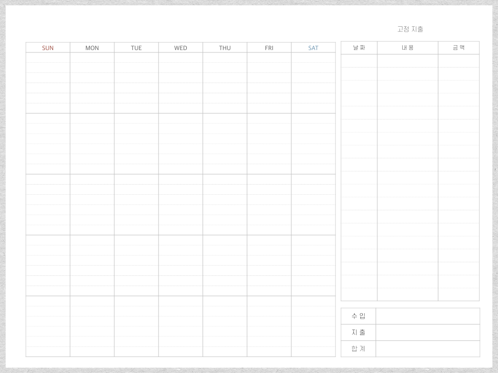 상단에 있는 년도와 월을 없앴더니, 뭔가 휑 한 느낌입니다. '에스코어드림체'를 이용해서 속지를 만들었기 때문에, 여러분들도 에스코어 드림체를 이용해서 작성하신다면 잘 어울릴것 같네요.