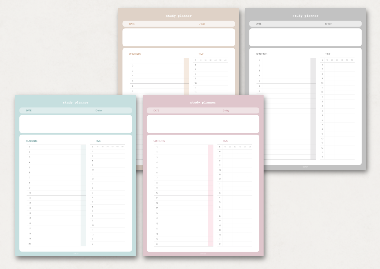 안녕하세요 도란입니다. 오늘은 파스텔톤의 굿노트 스터디플래너 4종을 가지고 왔습니다. 변화를 주면서도 깔끔하게 만들어보려고 노력했는데 나름 만족스럽게 나온 것 같아요. :) 앞으로 이 스타일로 여러 속지를 만들어보려고 합니다. ㅎㅎㅎ 여러분들도 유용하게 사용하셨으면 좋겠네요.