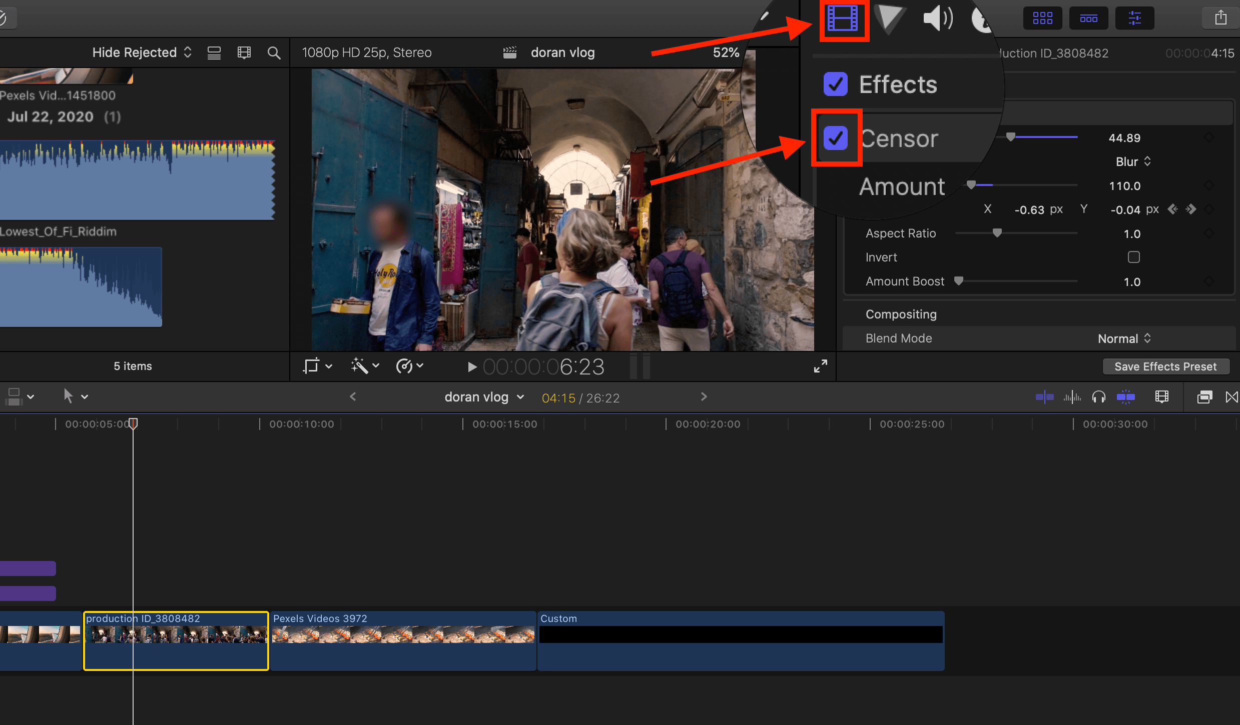 파이널컷 효과 모자이크 이펙트(Effects) 없애기 삭제 취소하는 방법 (Fianalcut Pro X / 파이널컷 기초 강좌)