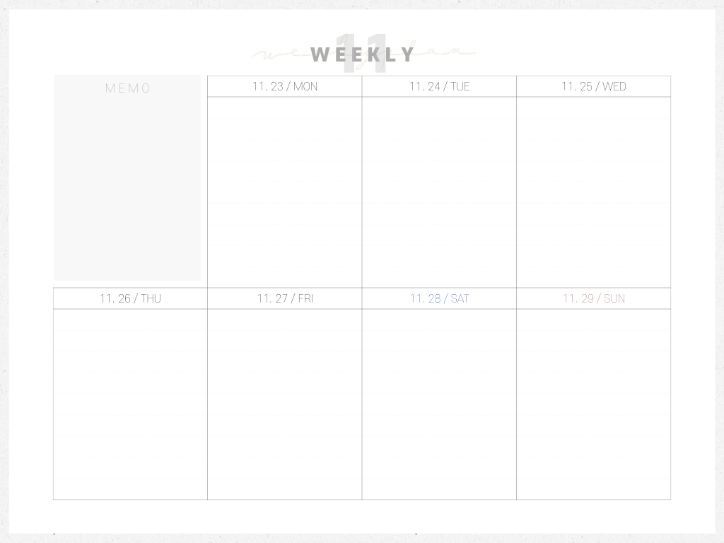 | 심플 11월 다이어리 + 주간 스터디 플래너 하이퍼링크 속지 4종 (종이/흰색/월요일시작/일요일시작) (4) | 2020.10.30 |