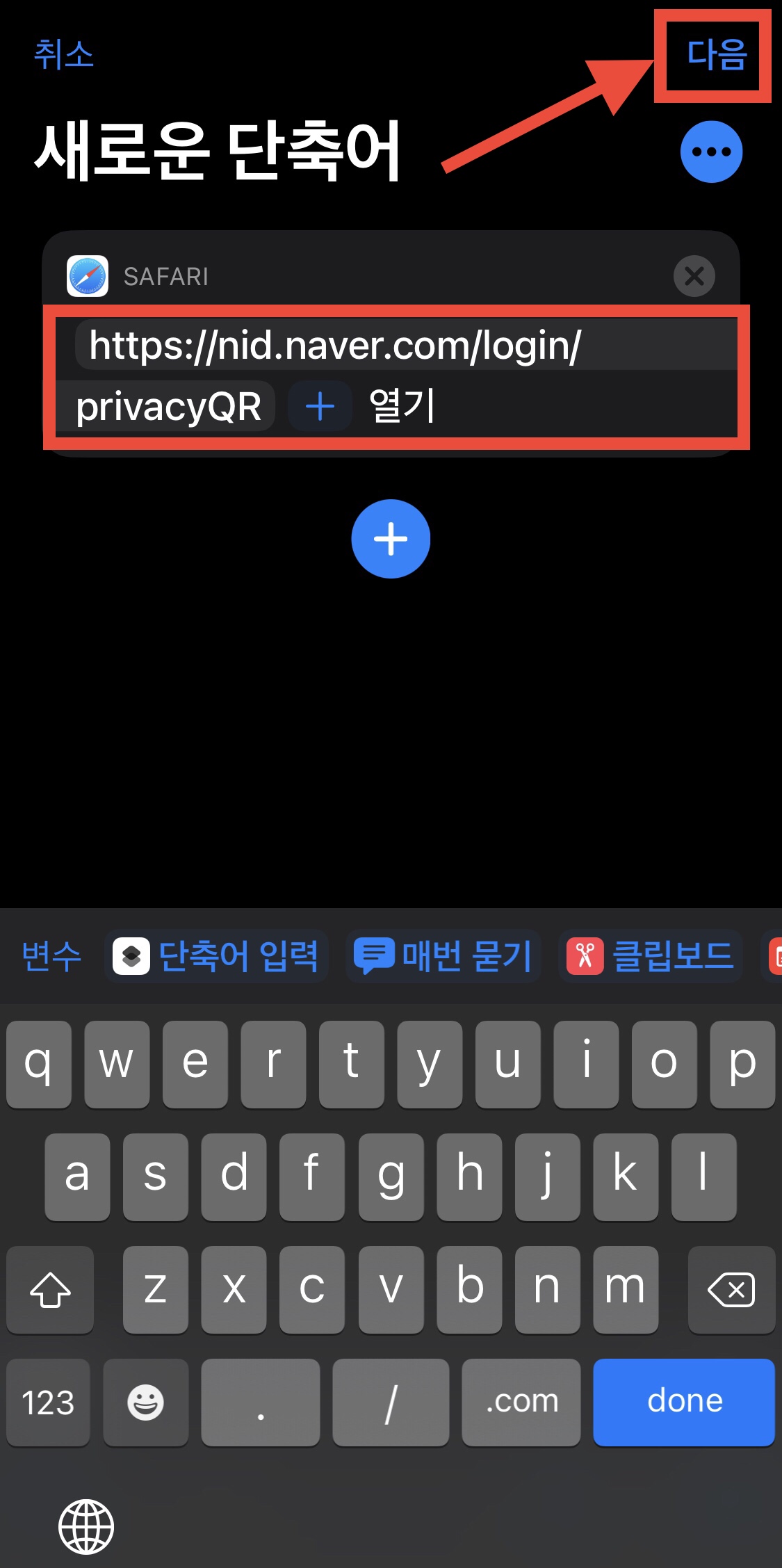 이제 아이폰 단축어에서 바로 네이버 큐알코드로 연결됩니다.