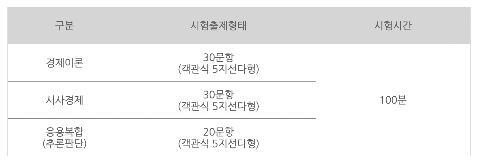 경제이론은 경제 정보를 이해하는데 필요한 주요 경제 지식 테스트입니다. 경제 기초, 미시, 거시, 금융, 국제 등 경제학 전분야에서 골고루 출제됩니다. 3점짜리 20문항, 4점짜리 10문항 등 총 30문항이며 100점 만점으로 구성됩니다.