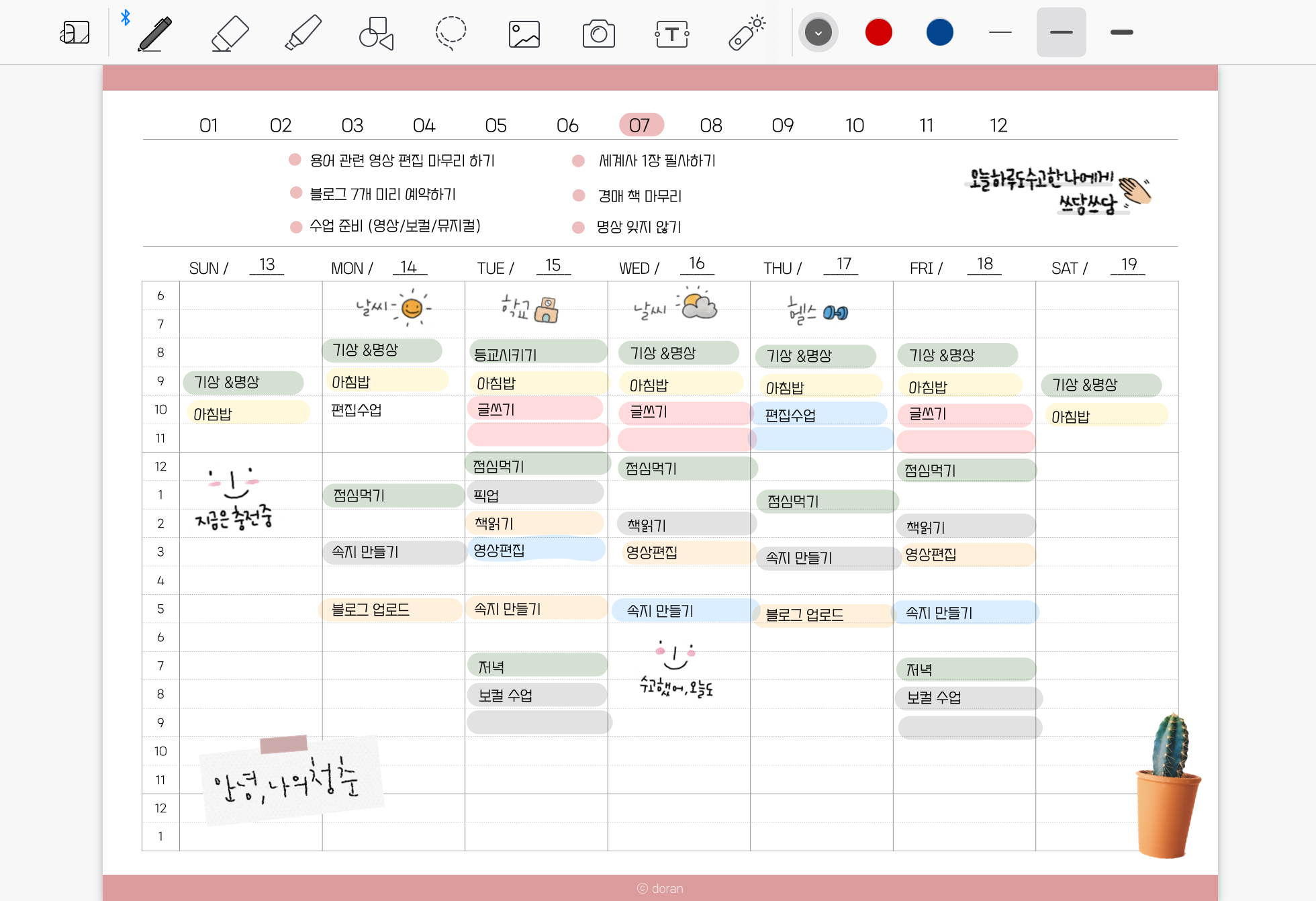 속지에 사용된 폰트는 [카페24 아네모네에어] 입니다. 상업용 무료 폰트입니다. 아래 예시에 사용된 폰트도 마찬가지로 카페24 아네모네 에업니다. 그리고 스티커들은 제가 제공하는 도란 스티커입니다. 제 블로그 상단에 있는 [찾기] 기능을 이용해서 '스티커'라고 검색하면 스티커 파일들을 다운로드 할 수 있습니다.
