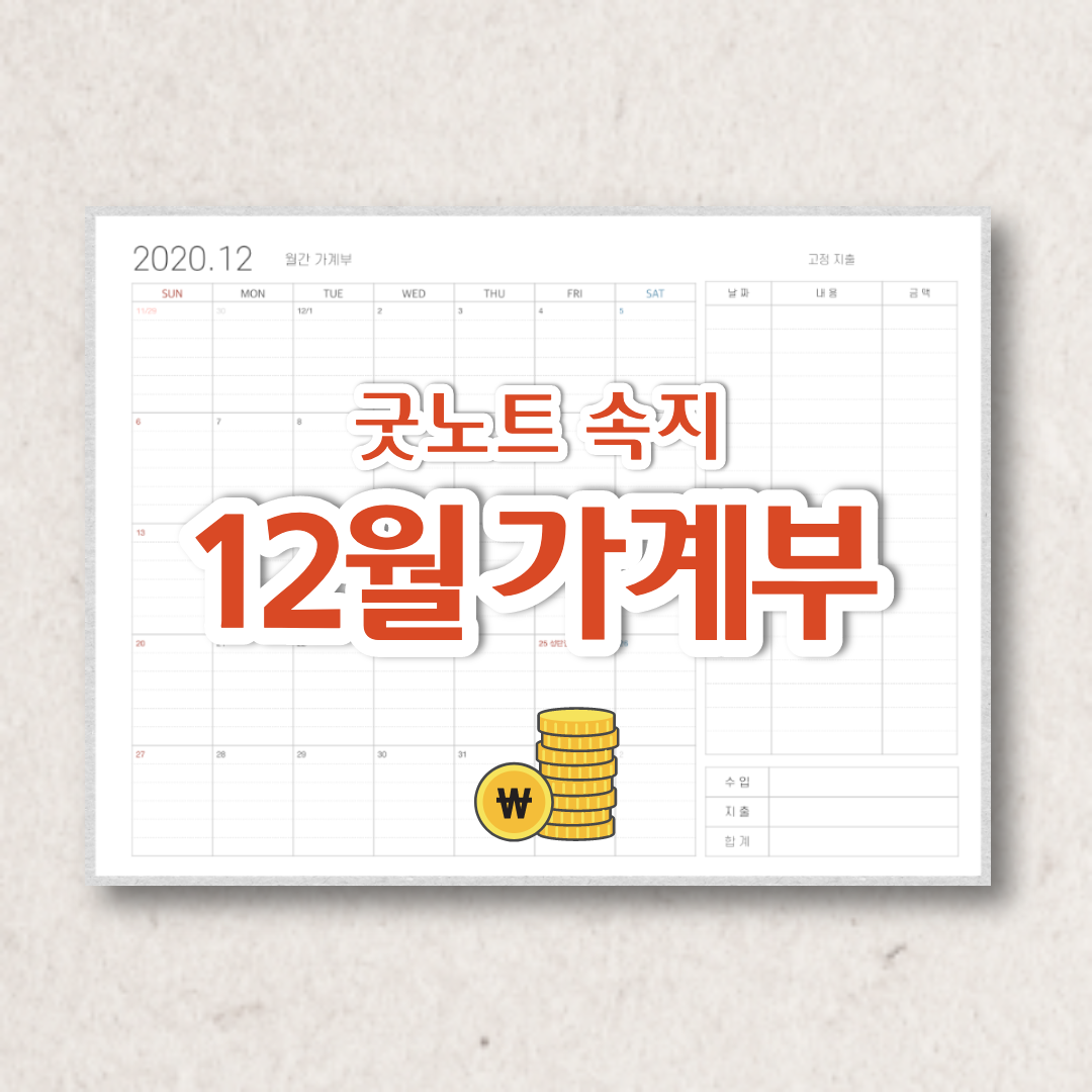 안녕하세요 도란입니다. 오늘은 굿노트 12월 월간 가계부 속지를 가지고 왔습니다 :)