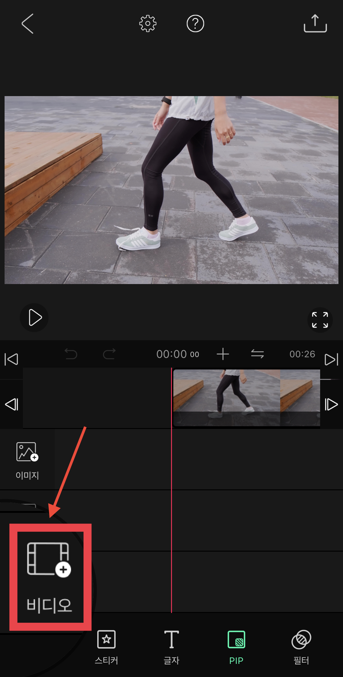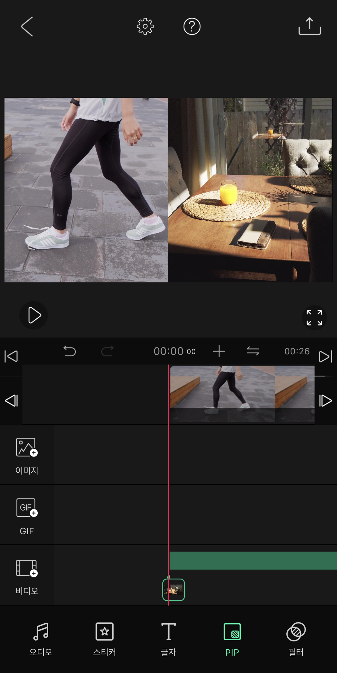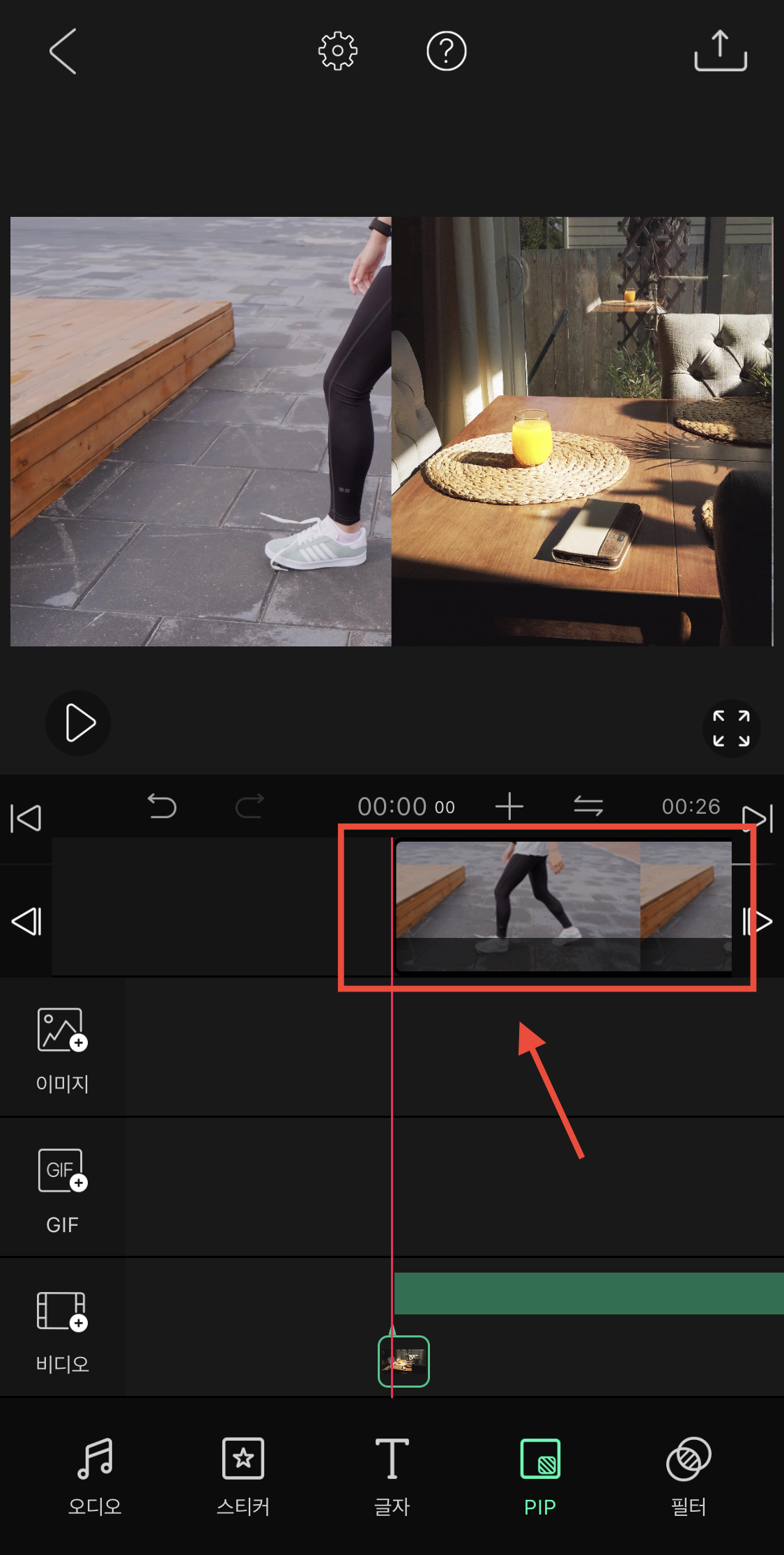 ▼ 이제 영상을 위에 넣어주기 위해 하단에 있는 PIP 메뉴를 눌러주세요.