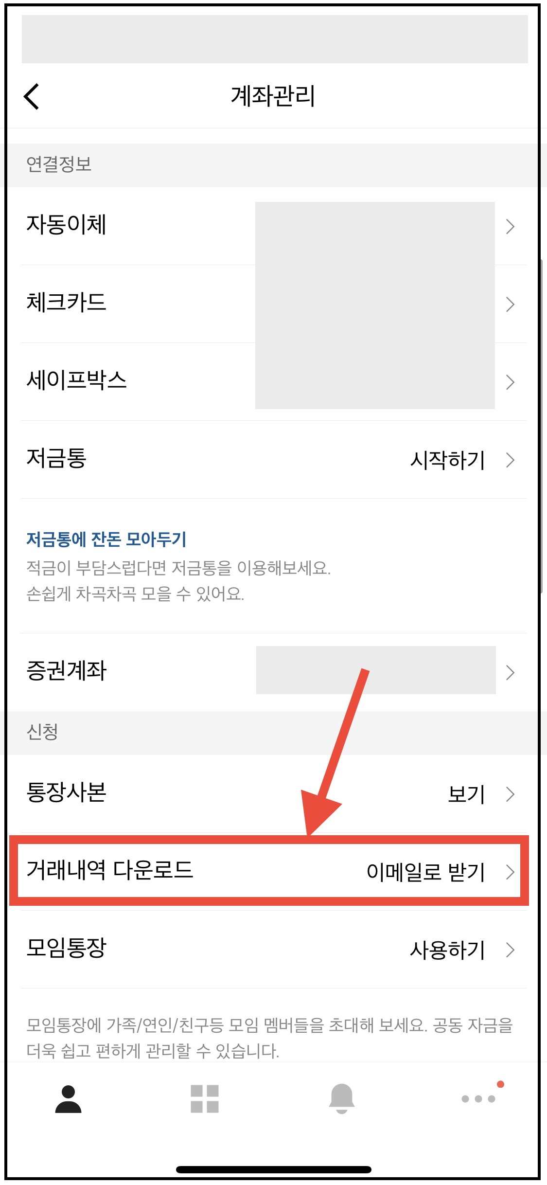 카카오 뱅크에서 거래내역을 다운로드하는 방법을 알아보겠습니다.