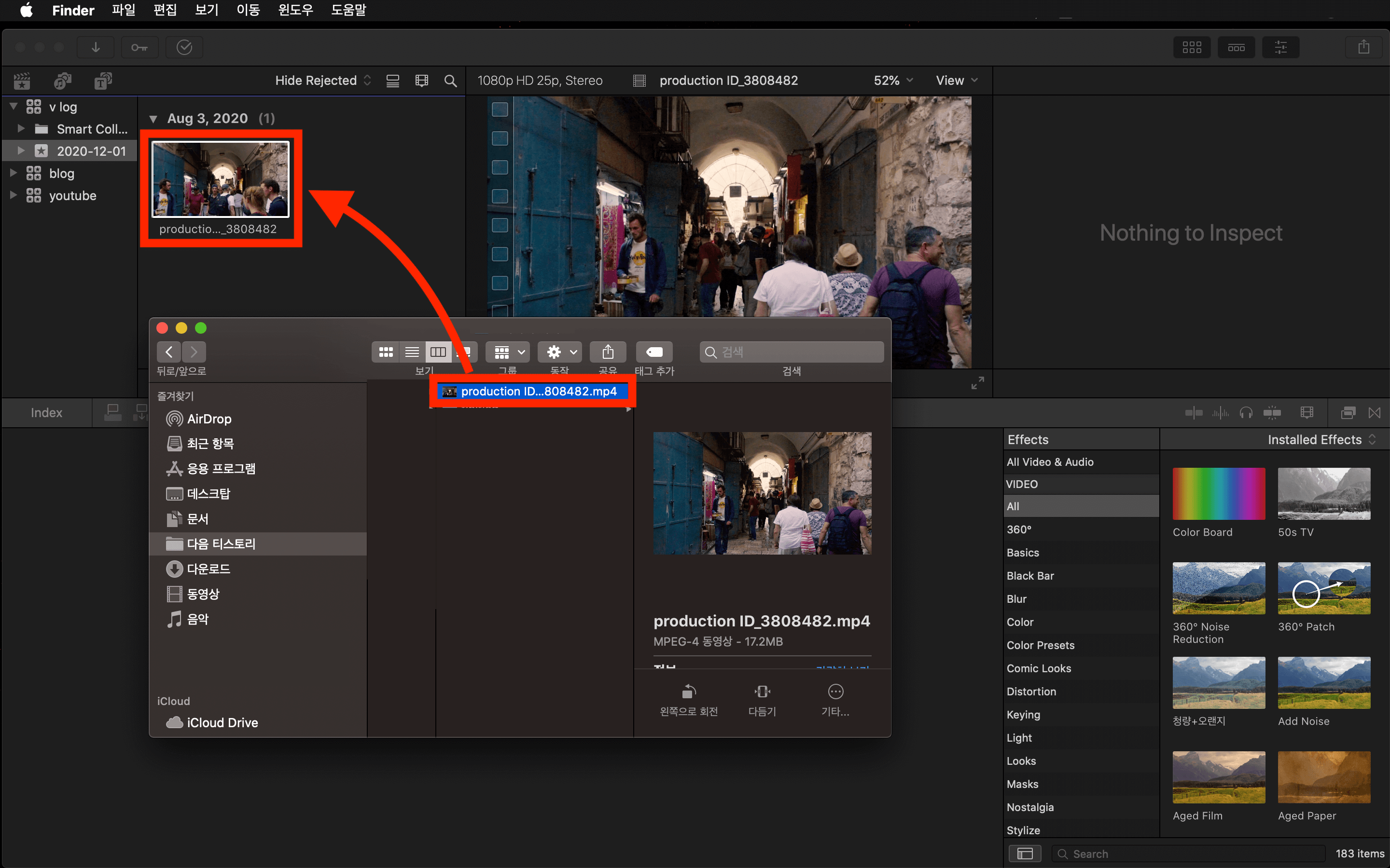 ▼ 혹은, 맥북에서 [Finder]를 실행시킨 뒤, 영상이 있는 폴더에서 바로 끌어다 놓을 수 있습니다.