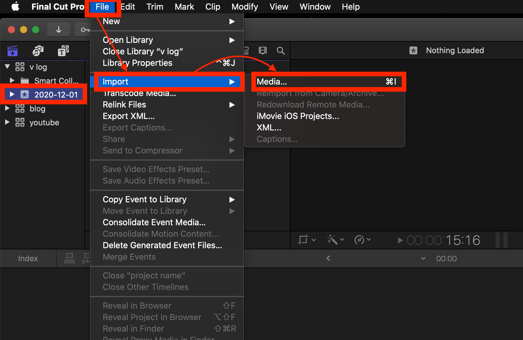 ▼ 촬영한 영상 자료들을 넣어주기 위해서 [File] - [Import] - [Media]를 눌러서 영상들을 선택합니다.