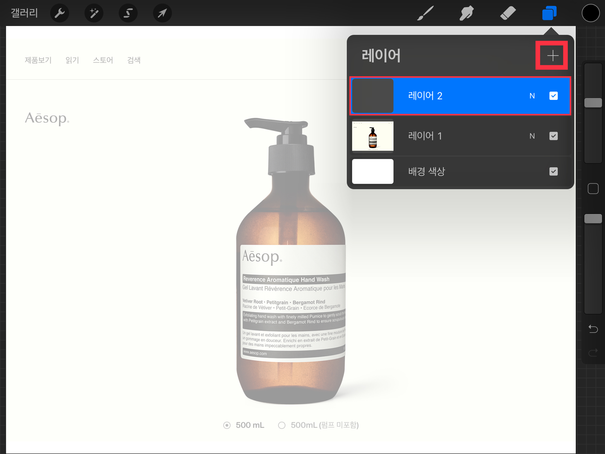 [프로크리에이트 Procreate 기초 ] 사진 투명도 조절 - 테두리 그리기 아이패드 (feat. 초보자 이솝Aesop 화장품 따라그리기 일러스트)