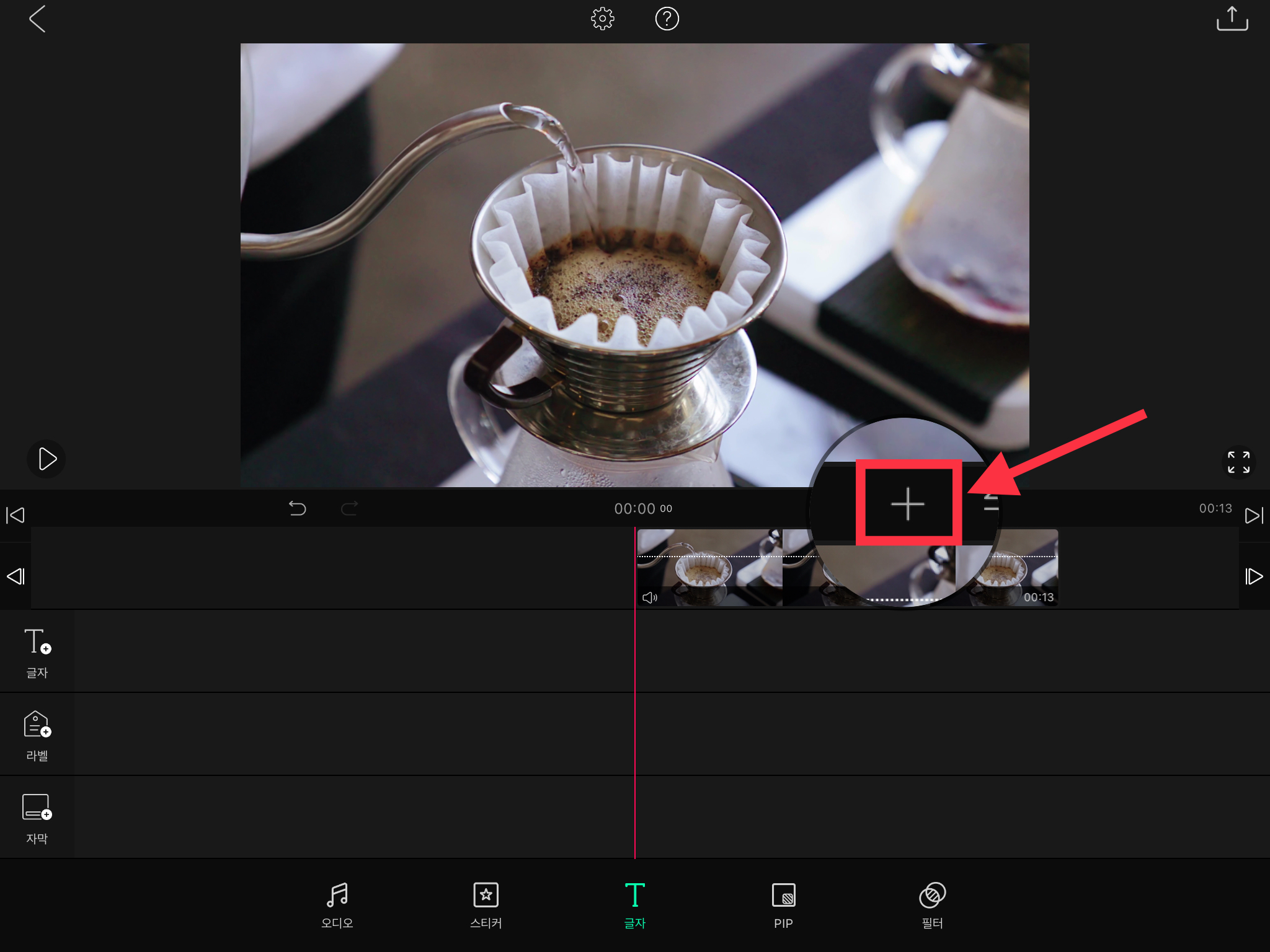 ▼ 먼저 블로를 실행한 뒤 아래와 같이 빨간색 줄이 영상의 가장 앞쪽에 있도록 해 놓습니다. 그리고 중간에 있는 [+] 버튼을 누릅니다. (빈 화면을 추가해 줄 예정입니다.)