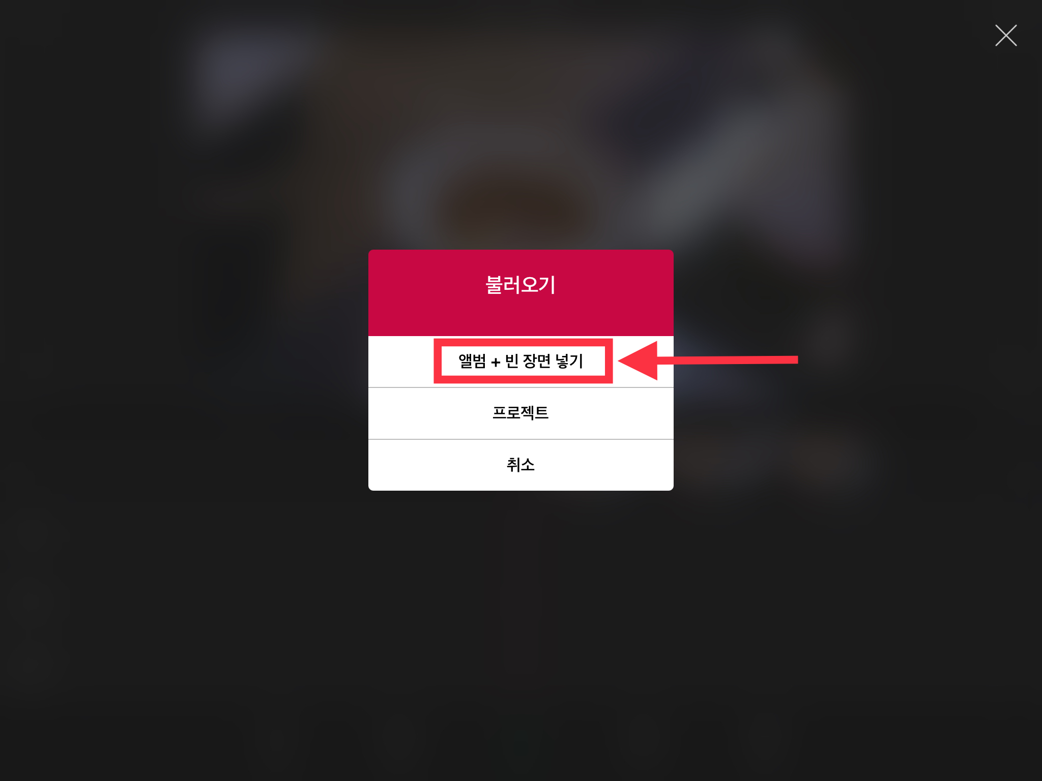 ▼ 팝업 화면이 나오면 아래와 같이 [앨범 + 빈 장면 넣기]를 눌러주세요.