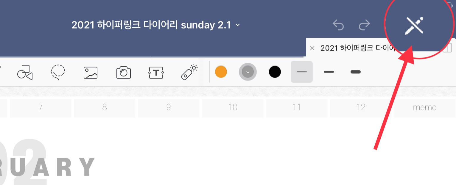 굿노트에서 하이퍼링크 사용하는 방법은 오른쪽 상단의 [하이퍼링크] 버튼을 눌러주는 것입니다.