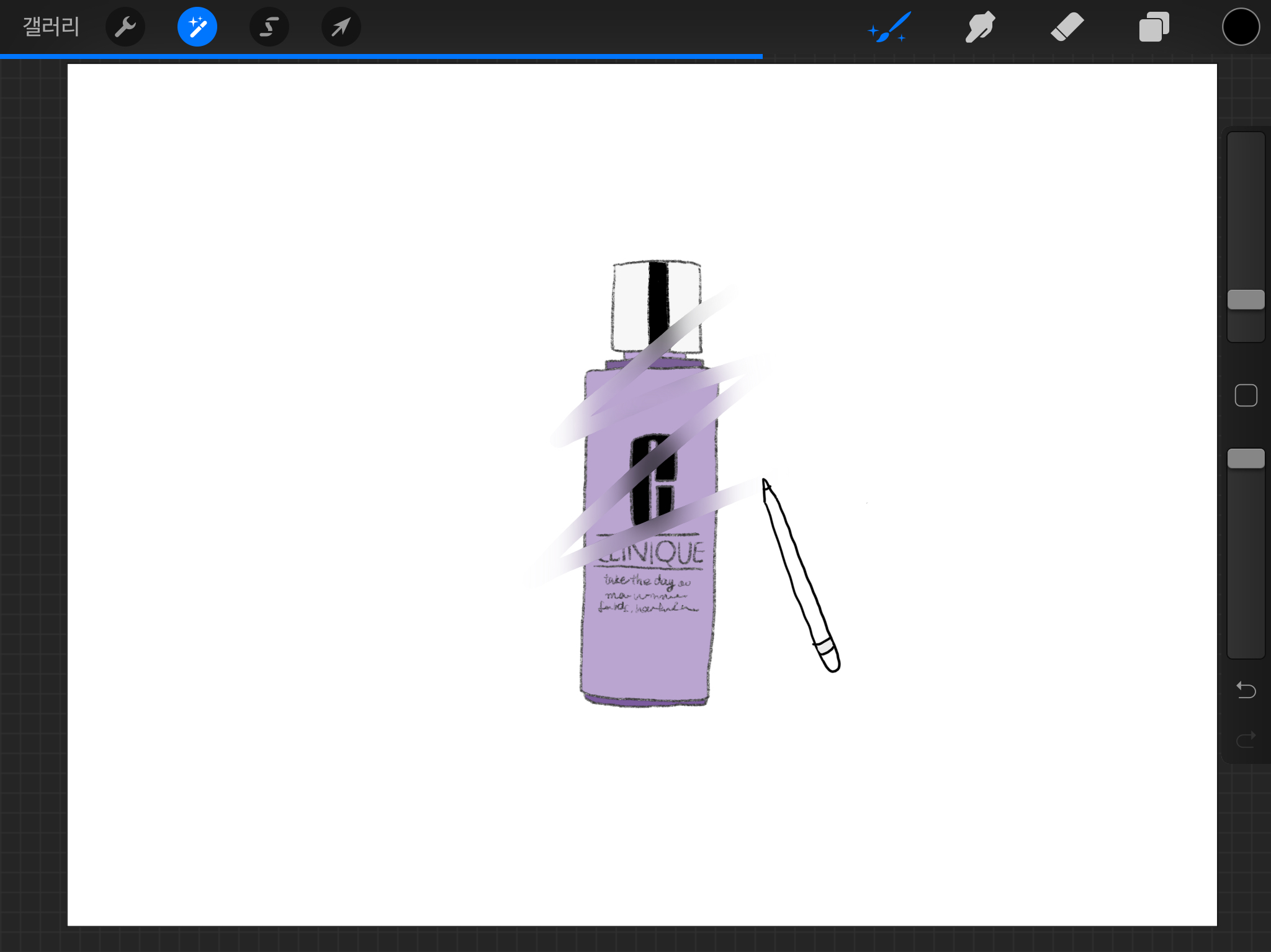 ▼ 이번에는 펜슬을 선택해보겠습니다. 펜슬을 선택할 경우에는 펜슬이 지나가는 자리만 흐리게 만들 수 있습니다. (업데이트된 후 마음에 드는 기능입니다)