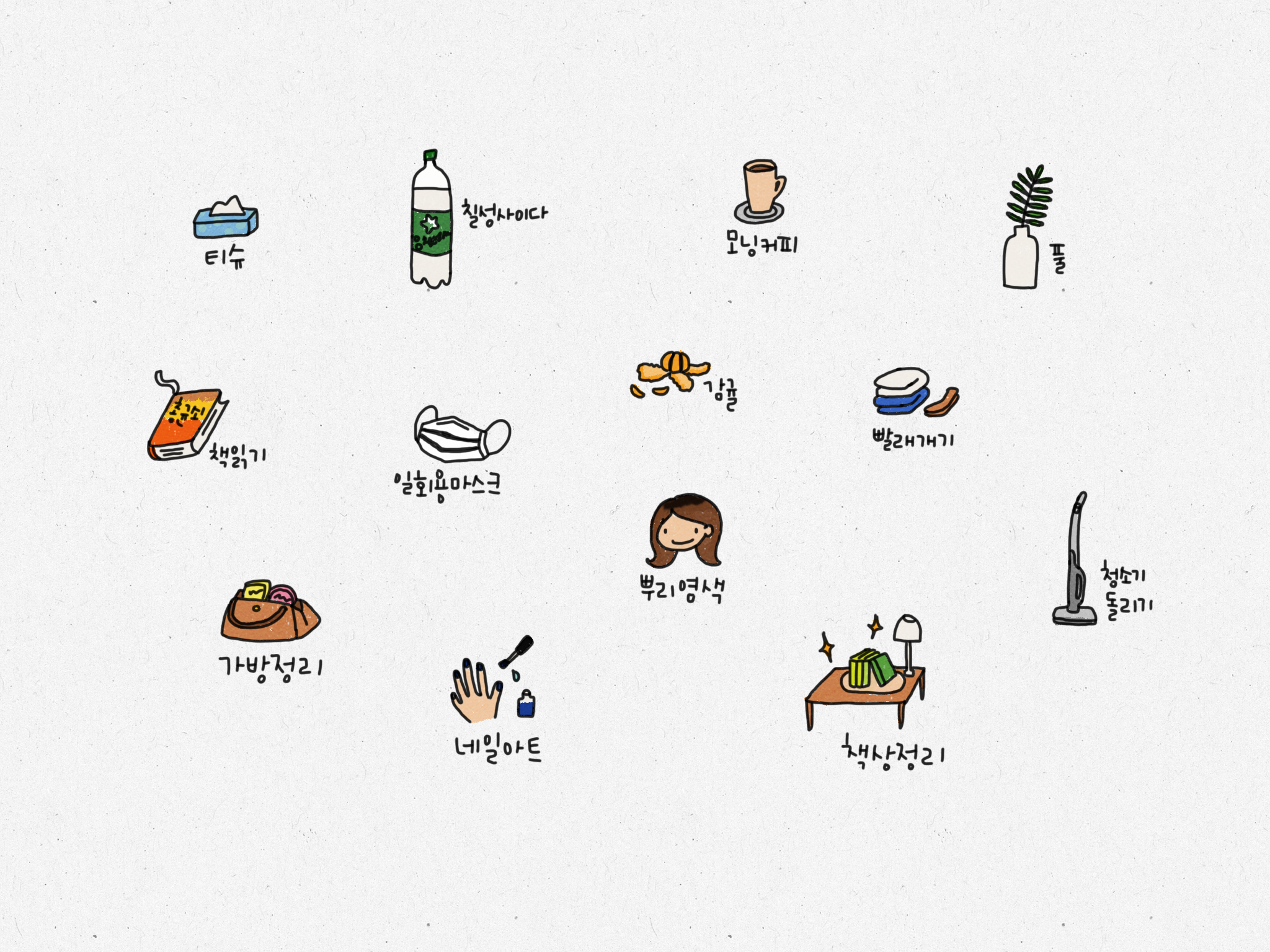 안녕하세요 도란입니다. 오늘도 아이패드 굿노트에서 사용 가능한 일상 스티커를 가지고 왔습니다. 그리고 해야 할 일들도 조금씩 그려보았어요.