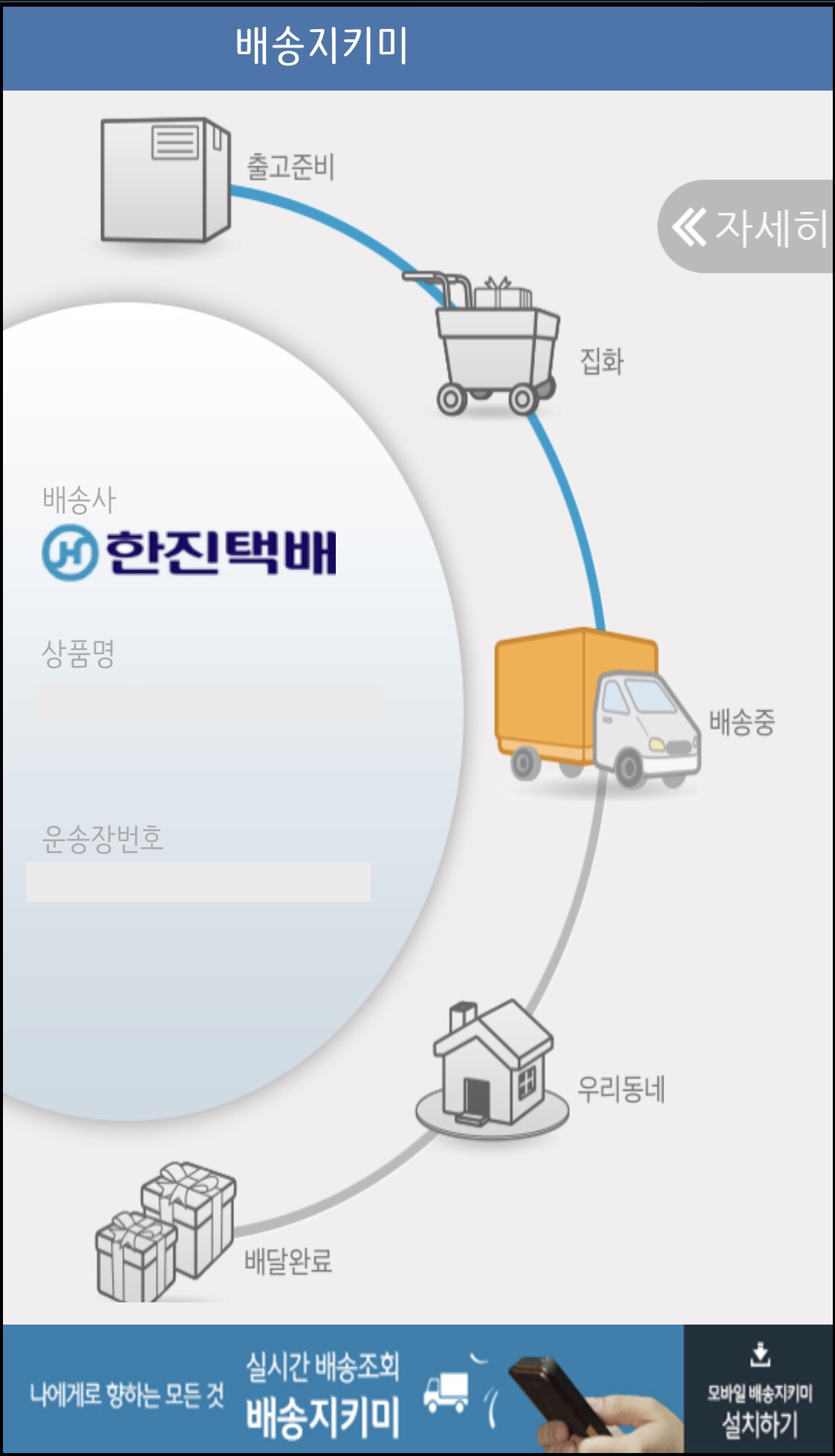 [배송지키미] 라는 어플에서도 택배 위치를 확인할 수 있습니다.