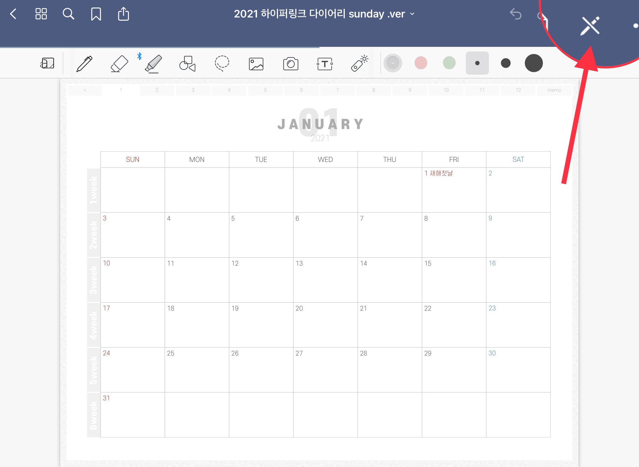 ▼ 굿노트에서 하이퍼링크 속지를 사용하기 위해서는 오른쪽 상단에 있는 [하이퍼 링크 해제] 버튼을 눌러주어야 합니다.
