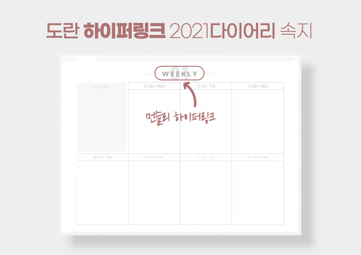 [doran] 굿노트 2021 다이어리 무료 하이퍼링크 속지 공유 (monthly+weekly / goodnotes template)