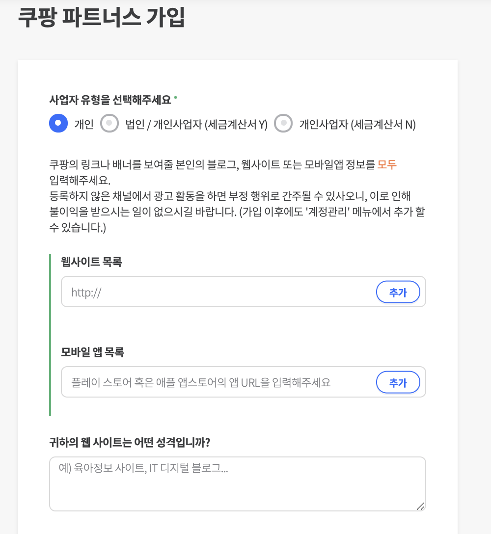 쿠팡 파트너스를 가입하게 되면 아래와 같은 화면이 나옵니다.