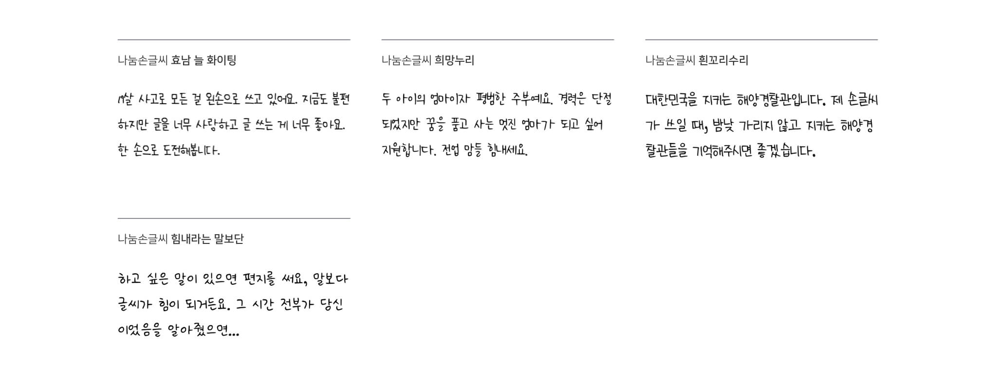 중간중간 가슴 뭉클한 글귀들도 보이네요. 아름다운 손글씨가 이렇게 폰트로 만들어져서 좋네요. 아이패드 굿노트에 적용해보면 더욱 정겨운 손글씨 다이어리가 됩니다. 고딕체를 선호하는 편인 제가 요즘 나눔 손글씨를 더욱 많이 사용하는 것 같습니다.