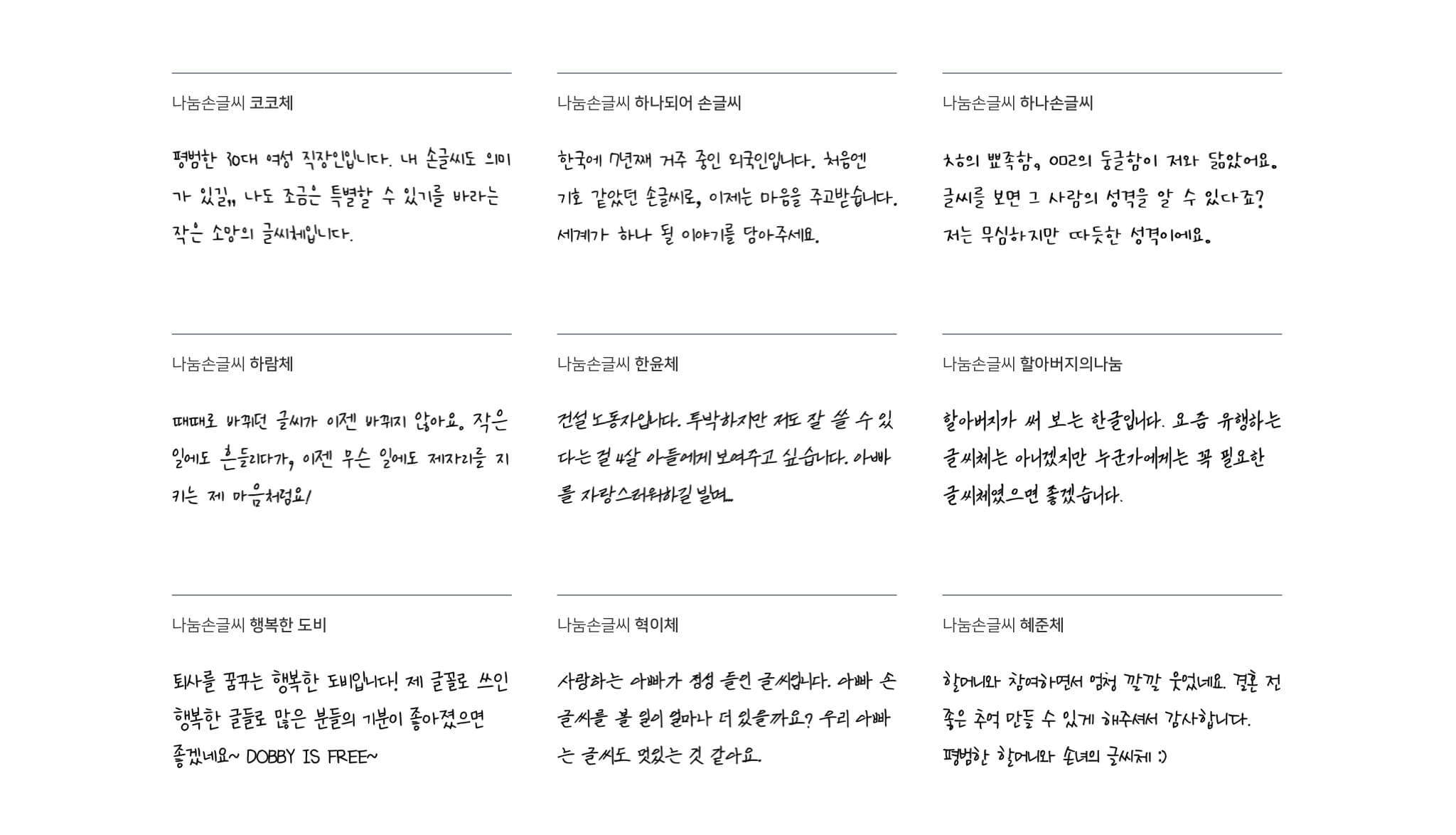 네이버 클로바에서 제공하는 나눔 손글씨 글꼴 100종을 소개합니다.
