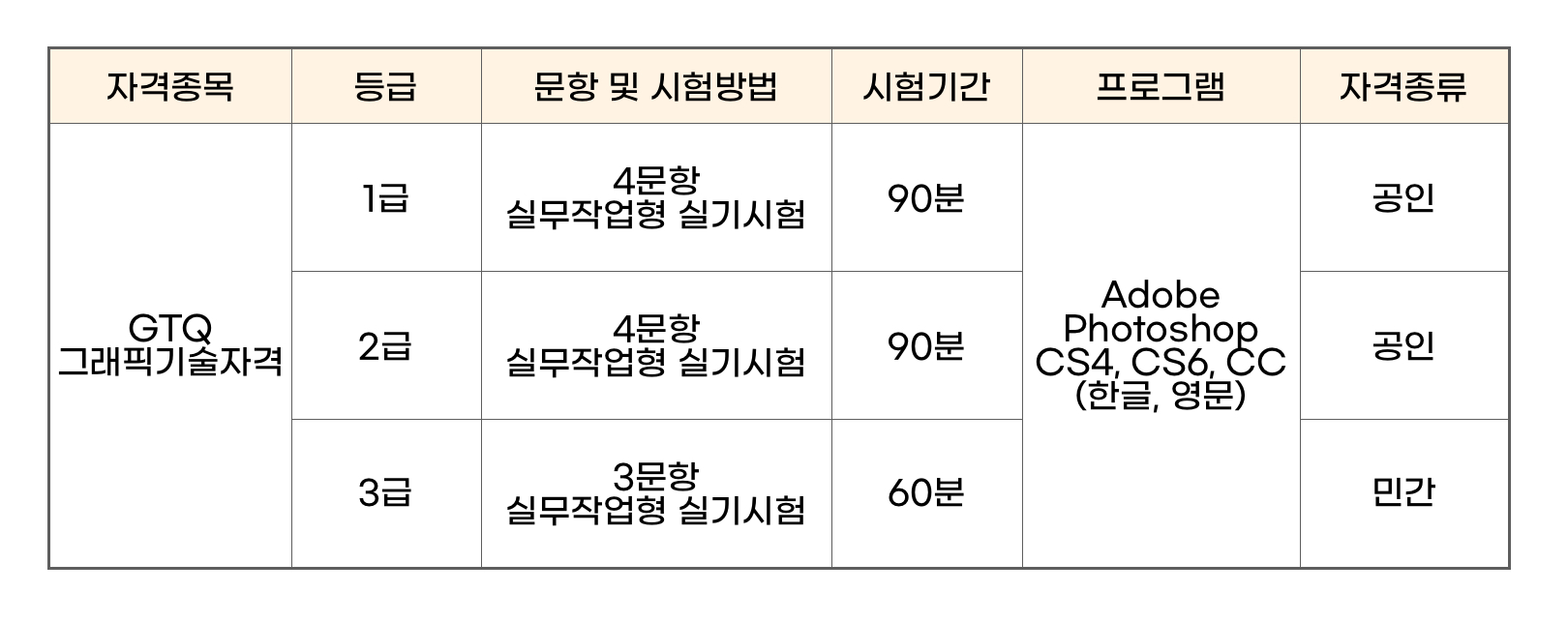 * 여기서 GTQ는 포토샵, GTQi는 일러스트, GTQid는 인디자인 자격증을 말합니다.