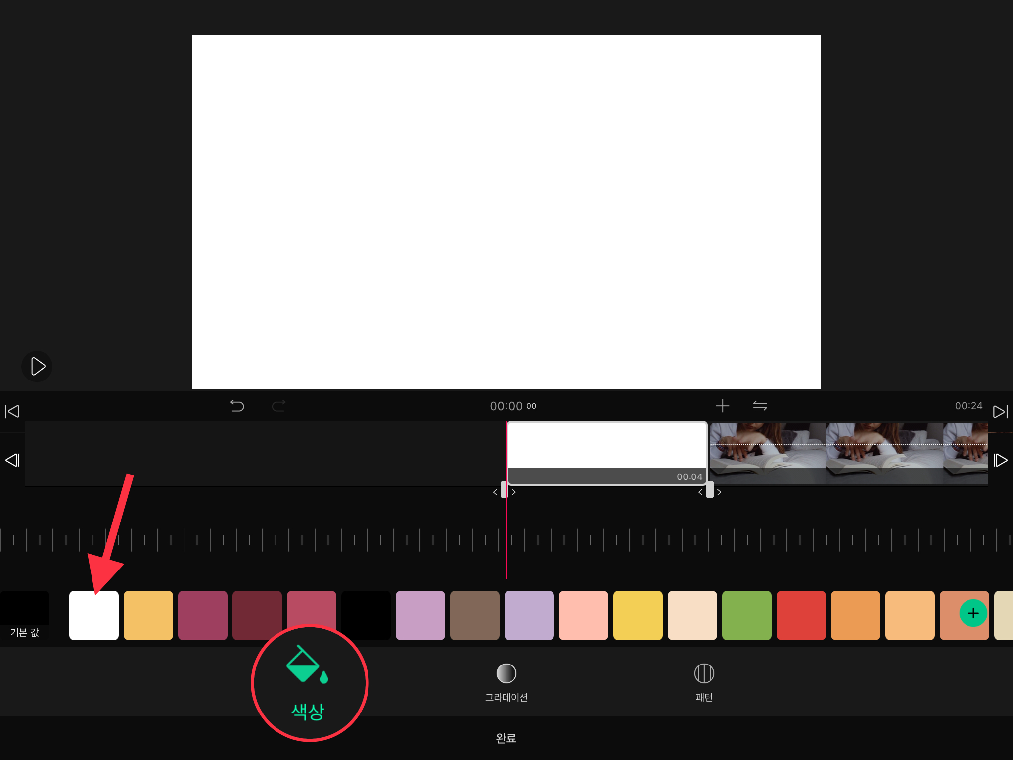 ▼ 그리고 [색상]을 선택한 뒤, 흰색 색상을 선택합니다.