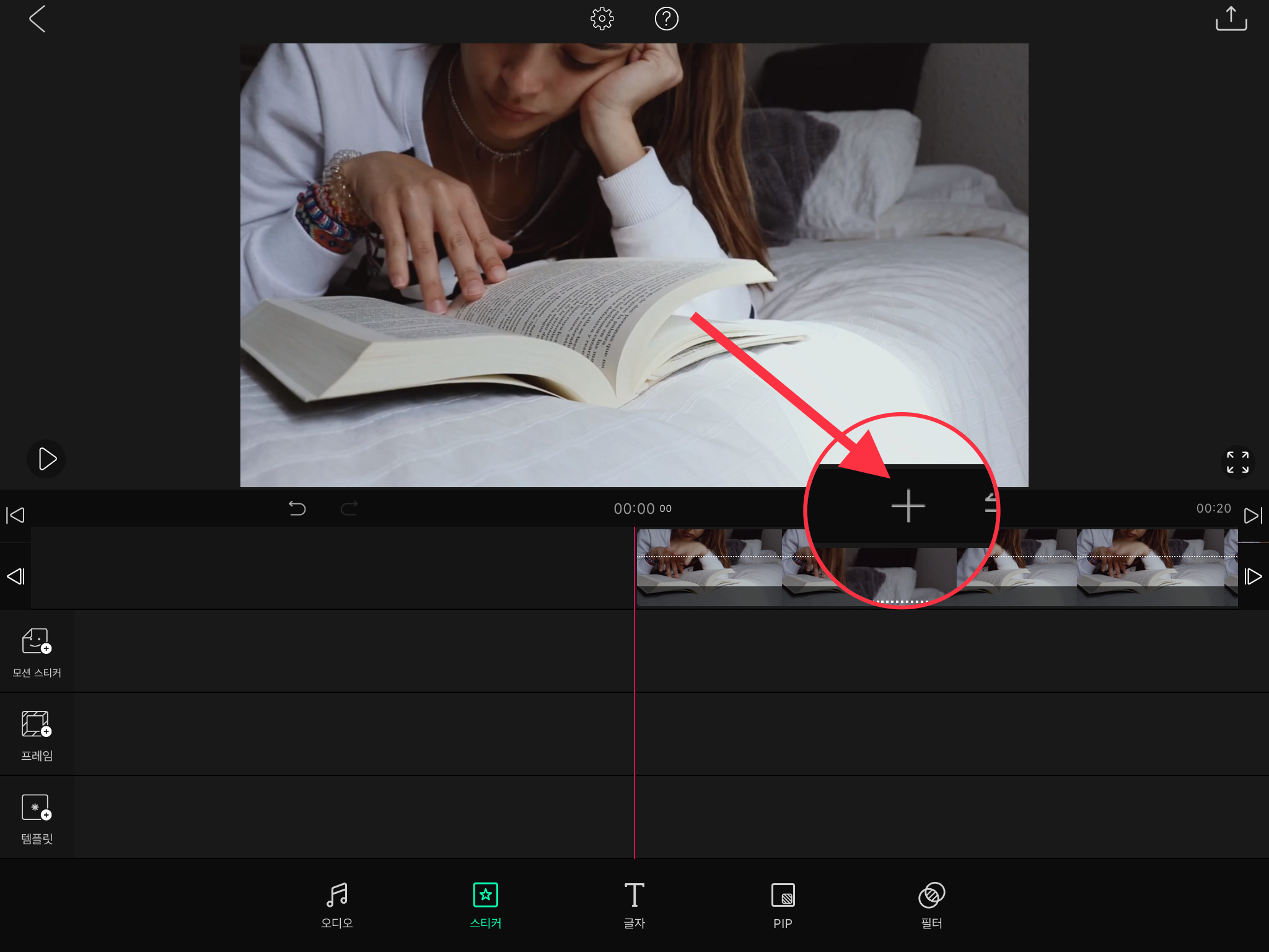 ▼ 먼저 영상을 불러온 뒤 타임라인 위에 있는 [+] 버튼을 눌러주세요.