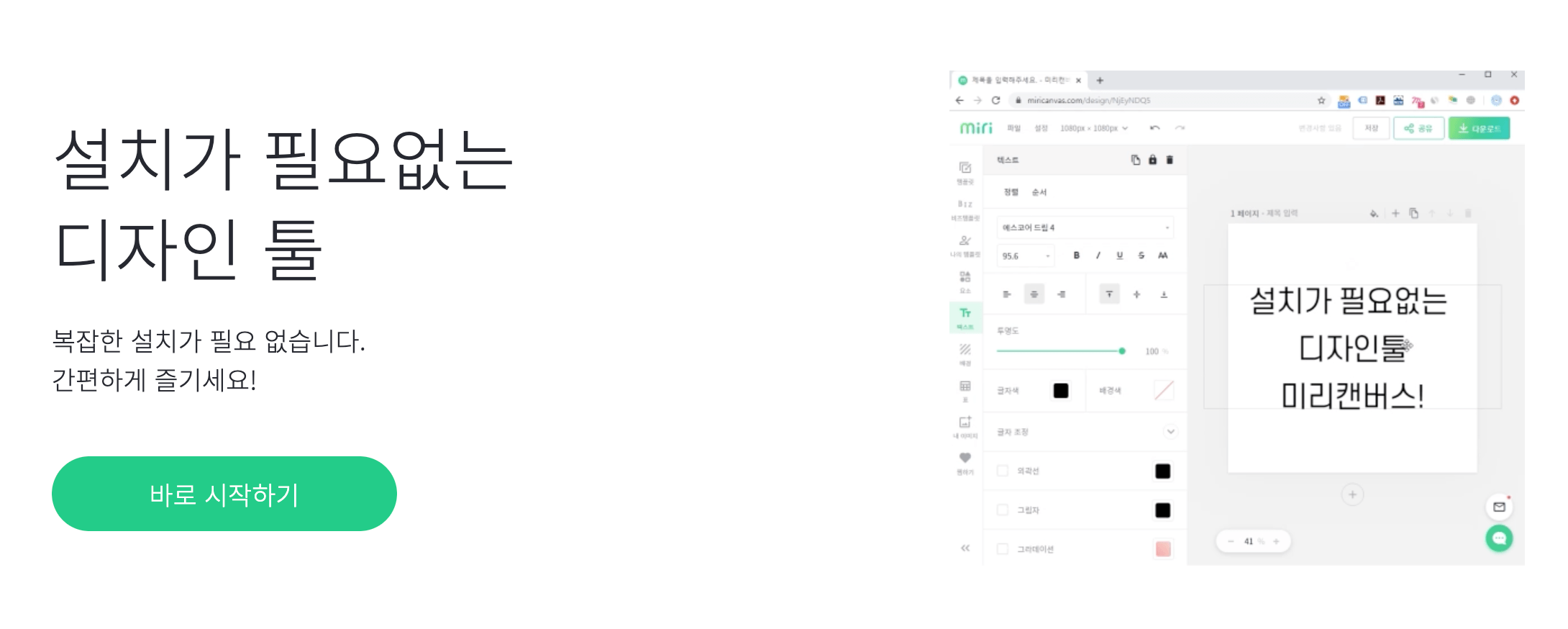 그리고 또 가장 좋은 장점은 컴퓨터에 설치할 필요가 없다는 점입니다. 로그인을 한 후에 사이트 자체에서 바로 디자인이 가능하기 때문에, 복잡한 설치 없이 바로 사용이 가능합니다.