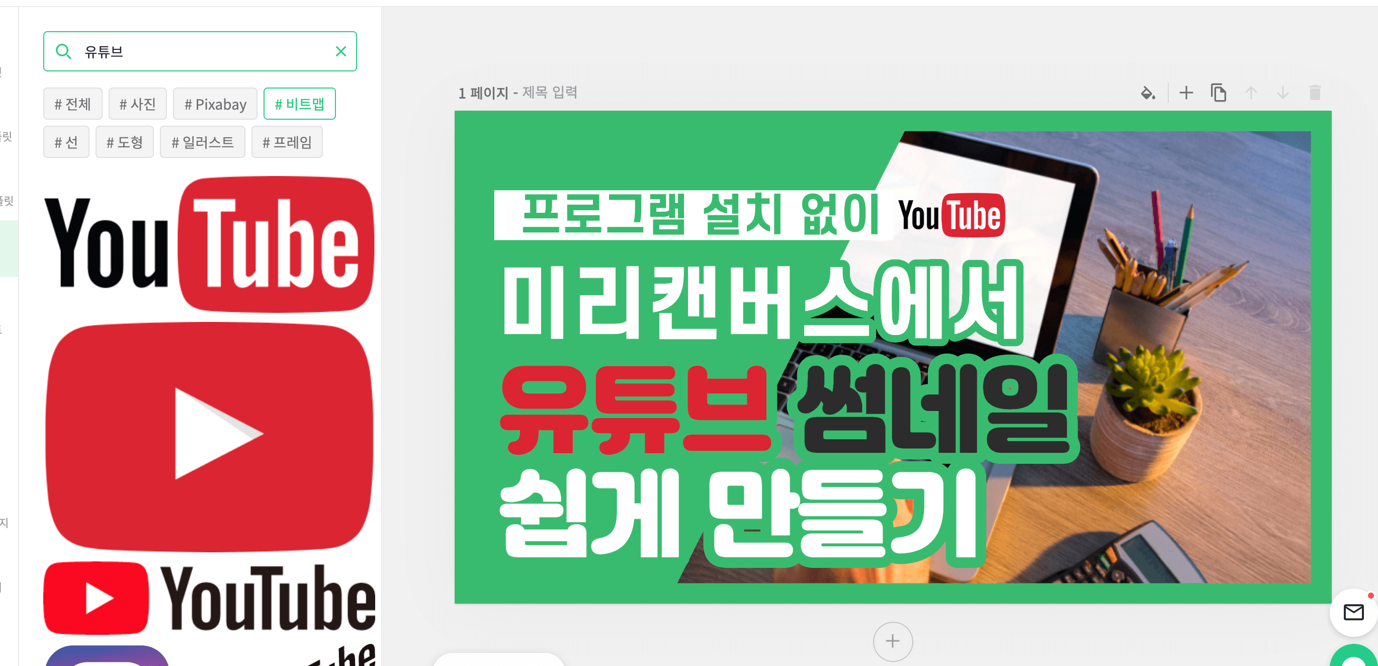 이렇게 되면 미리캔버스를 이용해서 유튜브 썸네일 만들기가 완성되었습니다.