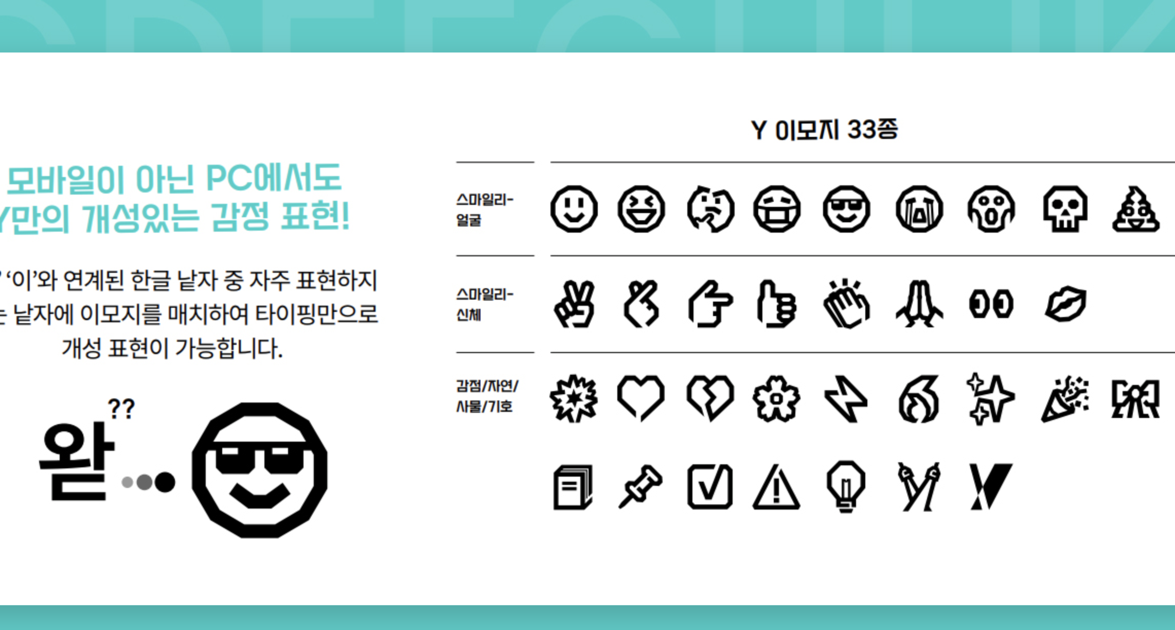 오늘은 케이티에서 제공하는 상업용 무료폰트 [Y너만을 비춤체]를 소개합니다. PLAY Y라는 어플은 KT고객이라면 간편하게 데이터를 주고받는 어플입니다. 기존의 Y box에서 새롭게 변신을 하면서, 사이트에서 무료 폰트와 무료 PPT 템플릿도 제공하고 있습니다. (Y box 2.0 홈페이지 바로가기)