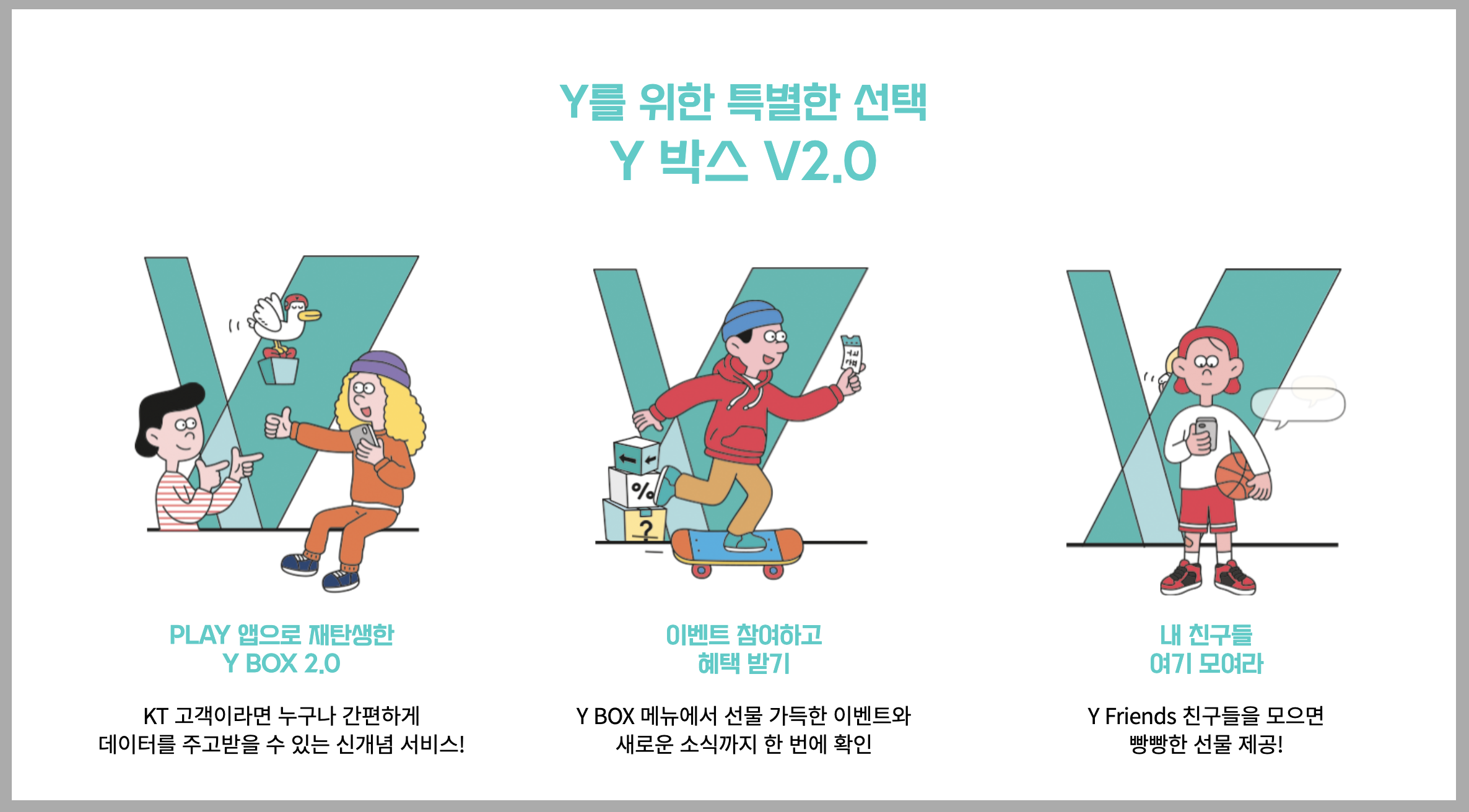 오늘은 케이티에서 제공하는 상업용 무료폰트 [Y너만을 비춤체]를 소개합니다. PLAY Y라는 어플은 KT고객이라면 간편하게 데이터를 주고받는 어플입니다. 기존의 Y box에서 새롭게 변신을 하면서, 사이트에서 무료 폰트와 무료 PPT 템플릿도 제공하고 있습니다. (Y box 2.0 홈페이지 바로가기)