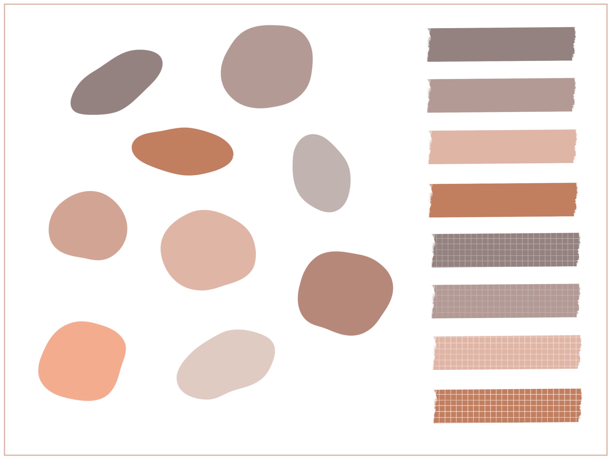 이런 느낌있는(?) 울퉁불퉁 자갈 모양의 스티커는 뭔가 전문가들의 영역인 것 같아보였는데, 프로크리에이트 픽셀 유동화 기능을 이용해서 만들어 보니 굉장히 성취감이 있네요. 자갈 모양의 스티커를 만들면서 오른쪽에 찢어진 느낌의 마스킹 테이프도 함께 만들어보았습니다. 오랜만에 올리는 마스킹 테이프 같네요.