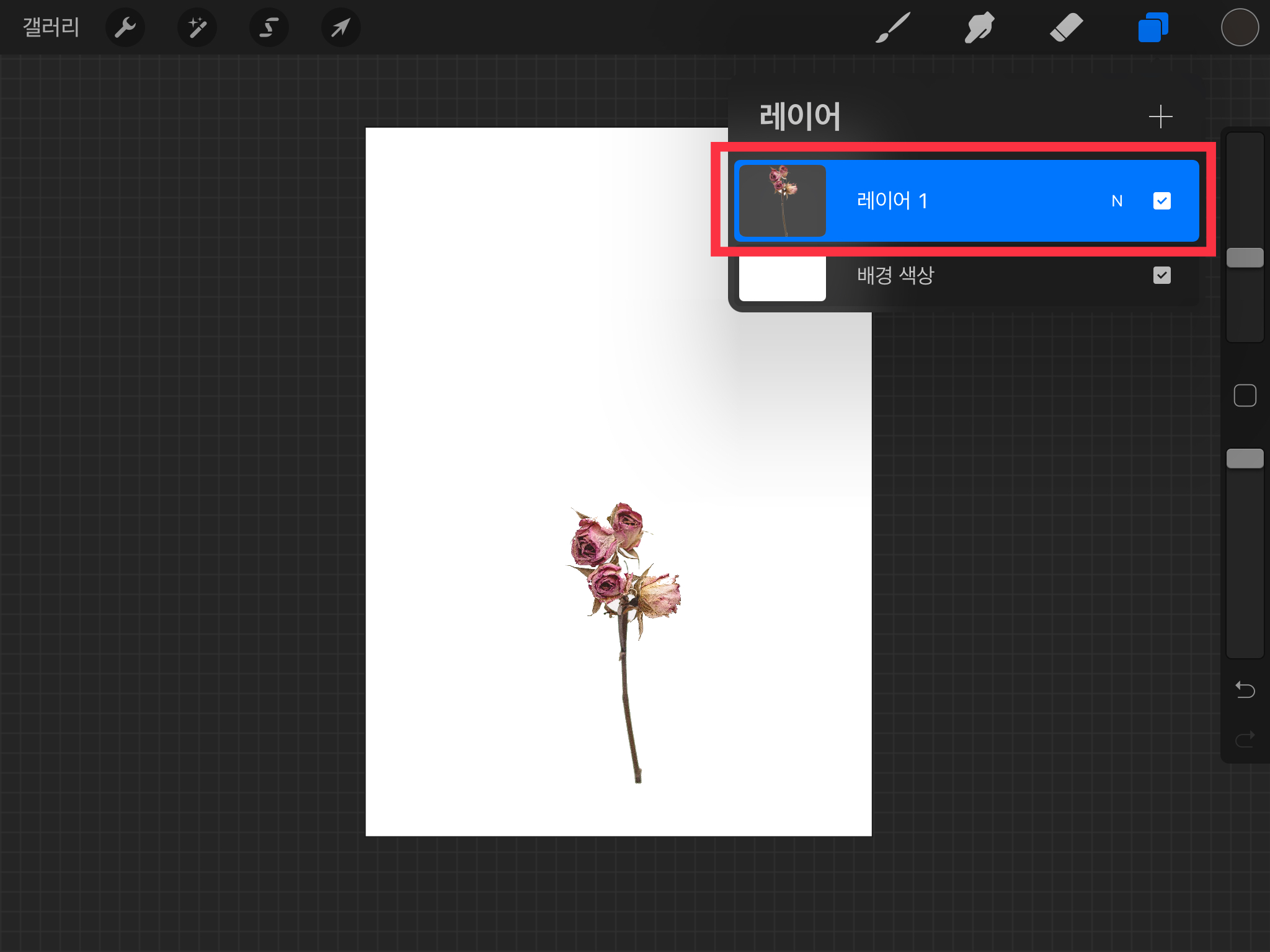 ▼ 이렇게 선택을 한 상태에서 오른쪽 상단의 레이어를 눌러주세요. 그리고 사진이 포함되어 있는 레이어를 왼쪽으로 쓱 밀어줍니다.