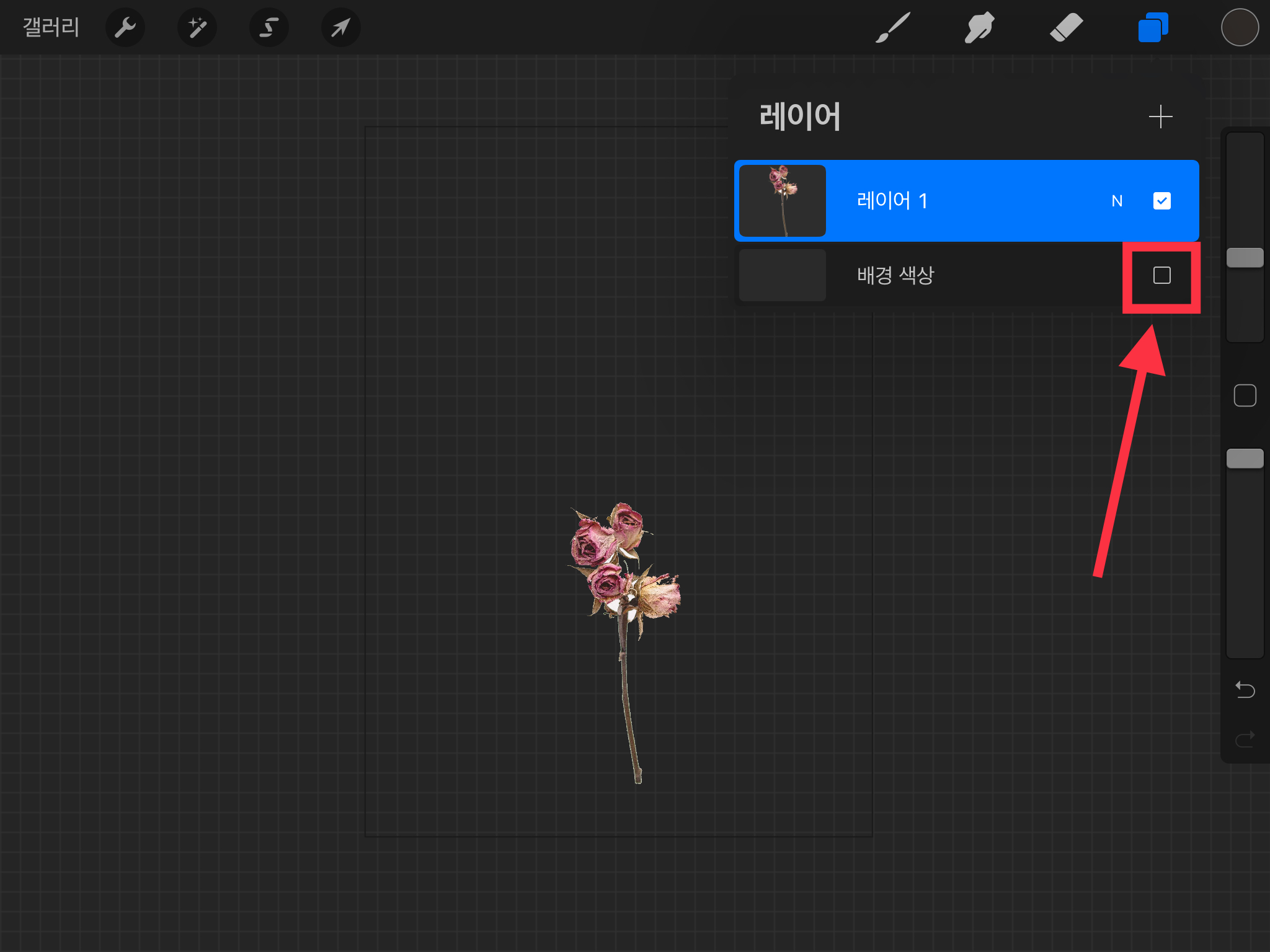 ▼ 배경 색상 버튼을 해제해보니 완전하게 배경이 삭제된 것을 확인할 수 있습니다.