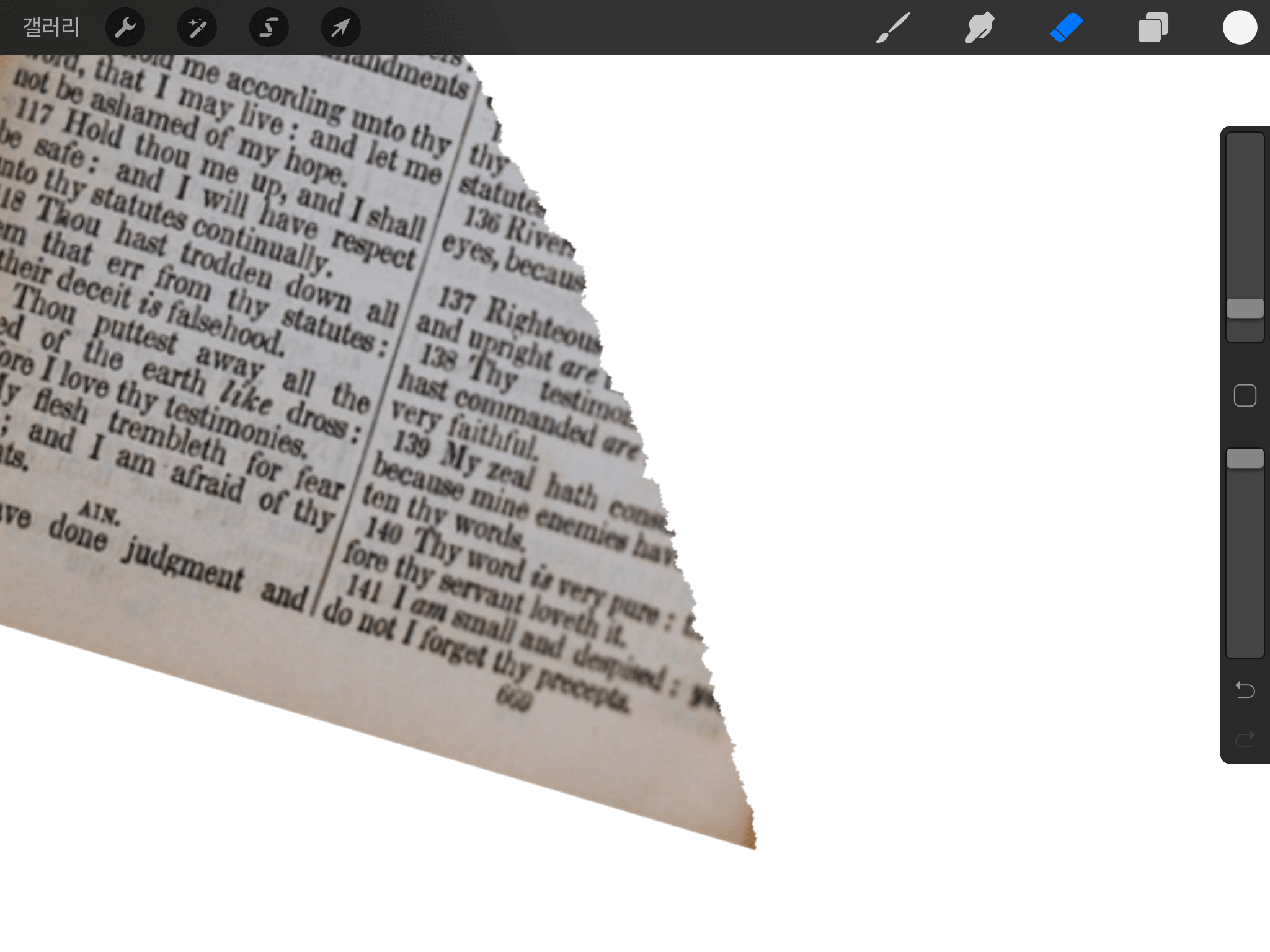 ▼ 브러시크기를 작게 만들어준 뒤, 디테일하게 꼼꼼하게 지워주세요. 더욱 찢어진 종이 느낌이 납니다.