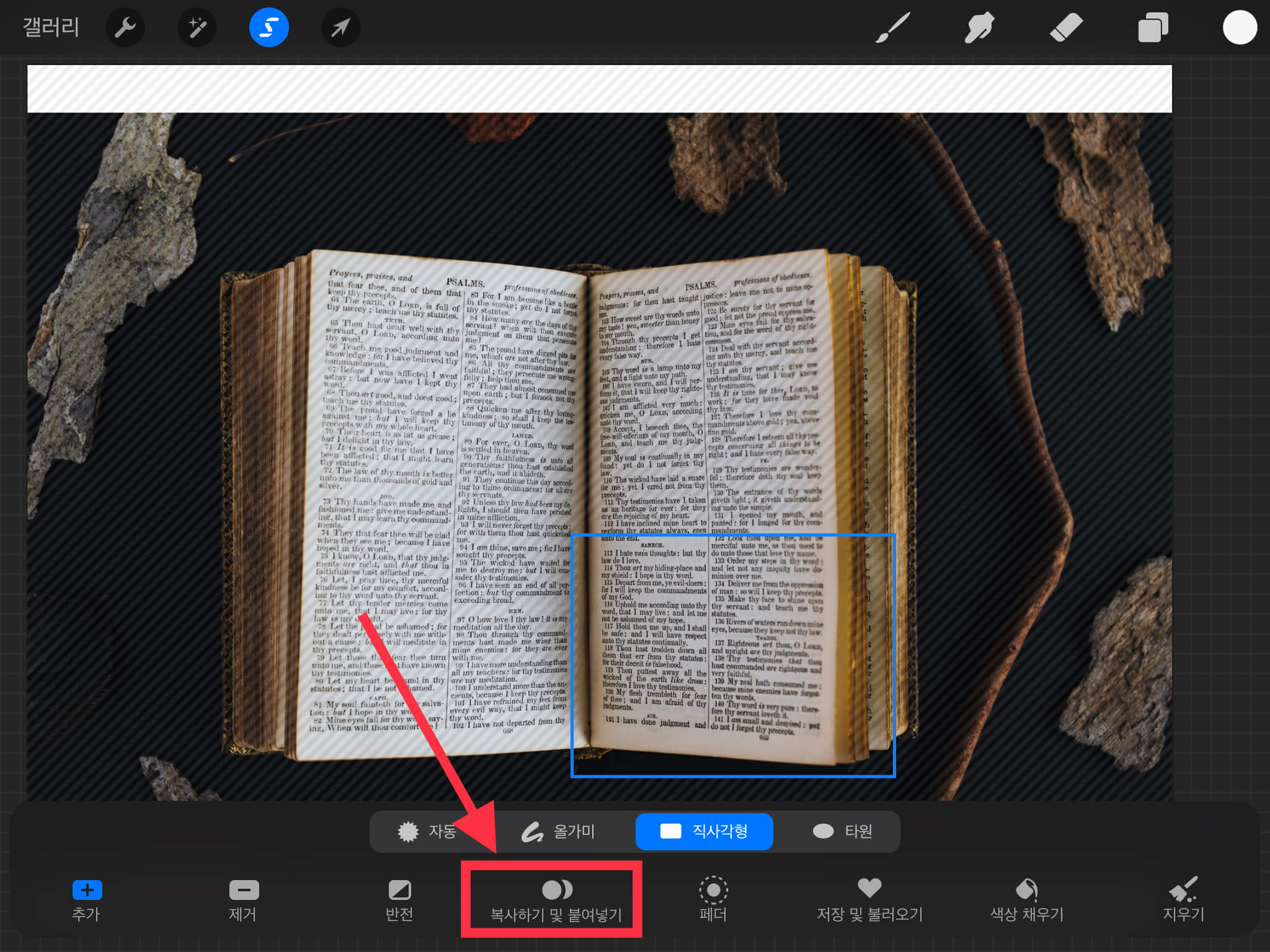 ▼ 그리고 사용할 영어책 크기만큼만 선택을 해준 뒤, [복사하기 및 붙여넣기]를 눌러주세요.