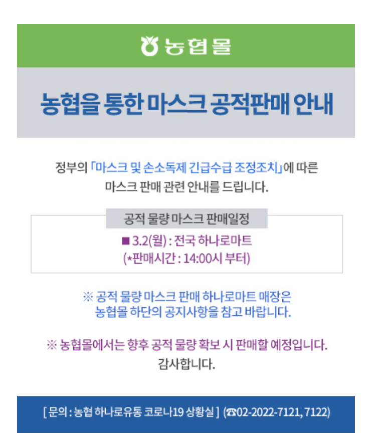 이상으로 농협과 우체국의 공적 마스크 판매처를 알아보았습니다.