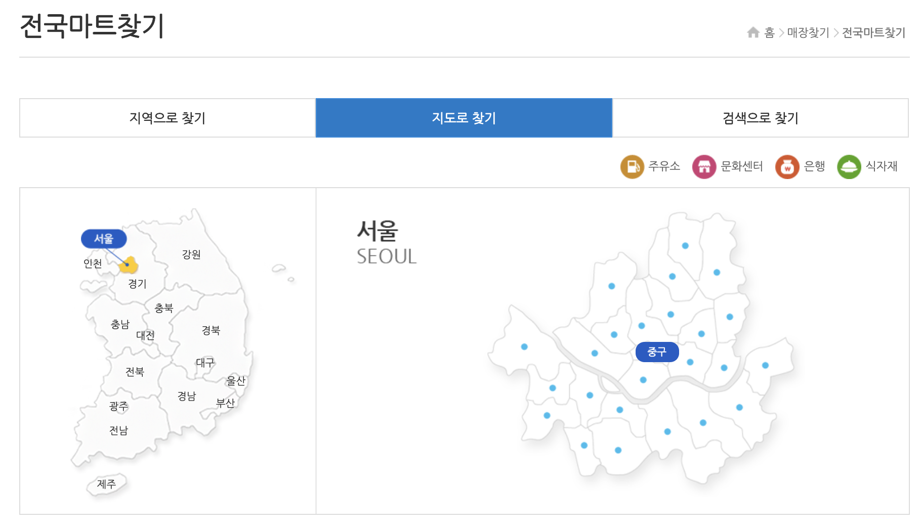 전국 하나로 마트 매장은 하나로마트 홈페이지에서 찾을 수 있습니다. 시, 도를 설정한 후에 찾을 수도 있고, 지도로 찾을 수도 있습니다.