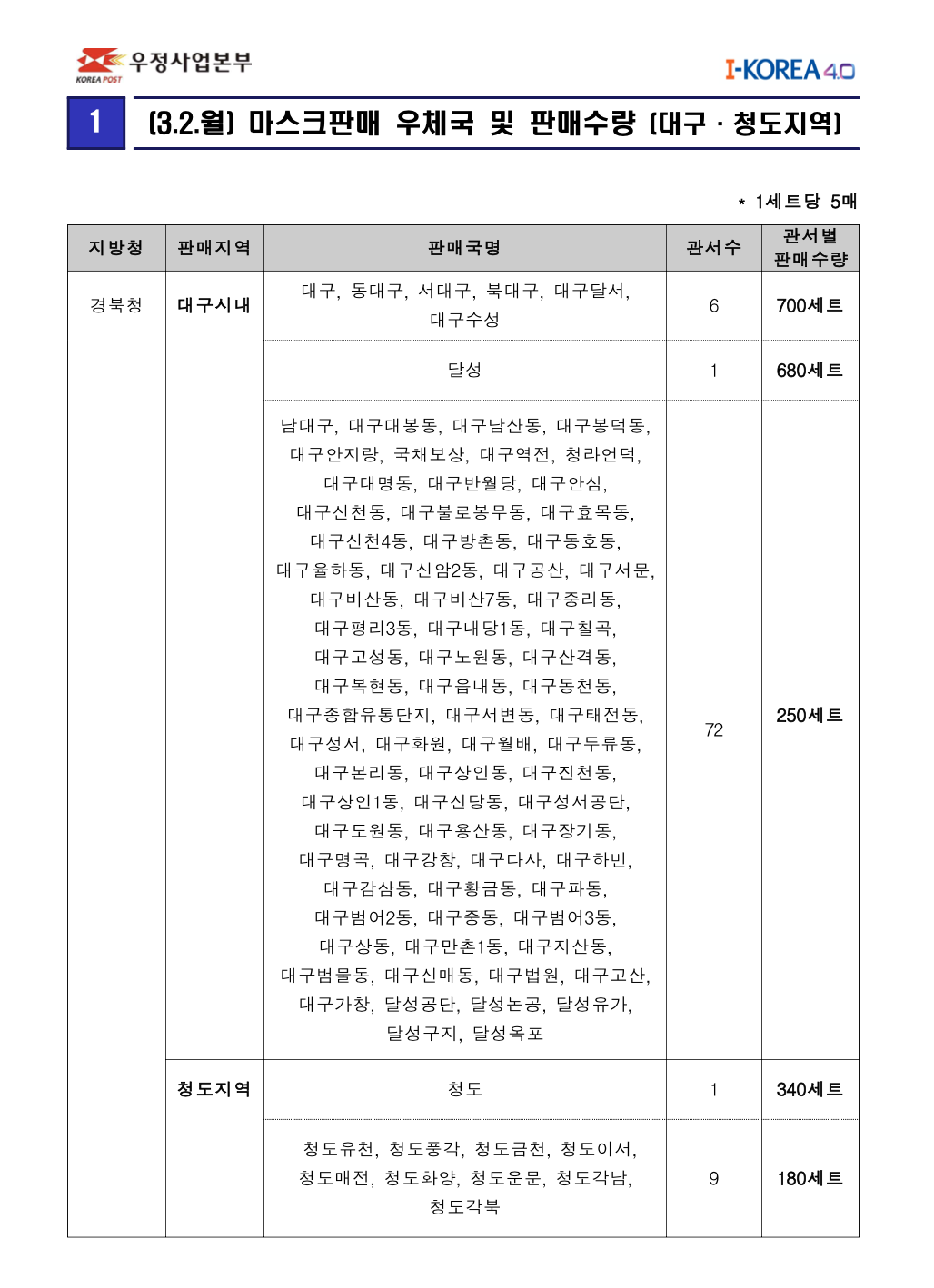 | 3월 4일 공적마스크 판매처 (하나로마트, 우체국) (0) | 2020.03.03 |