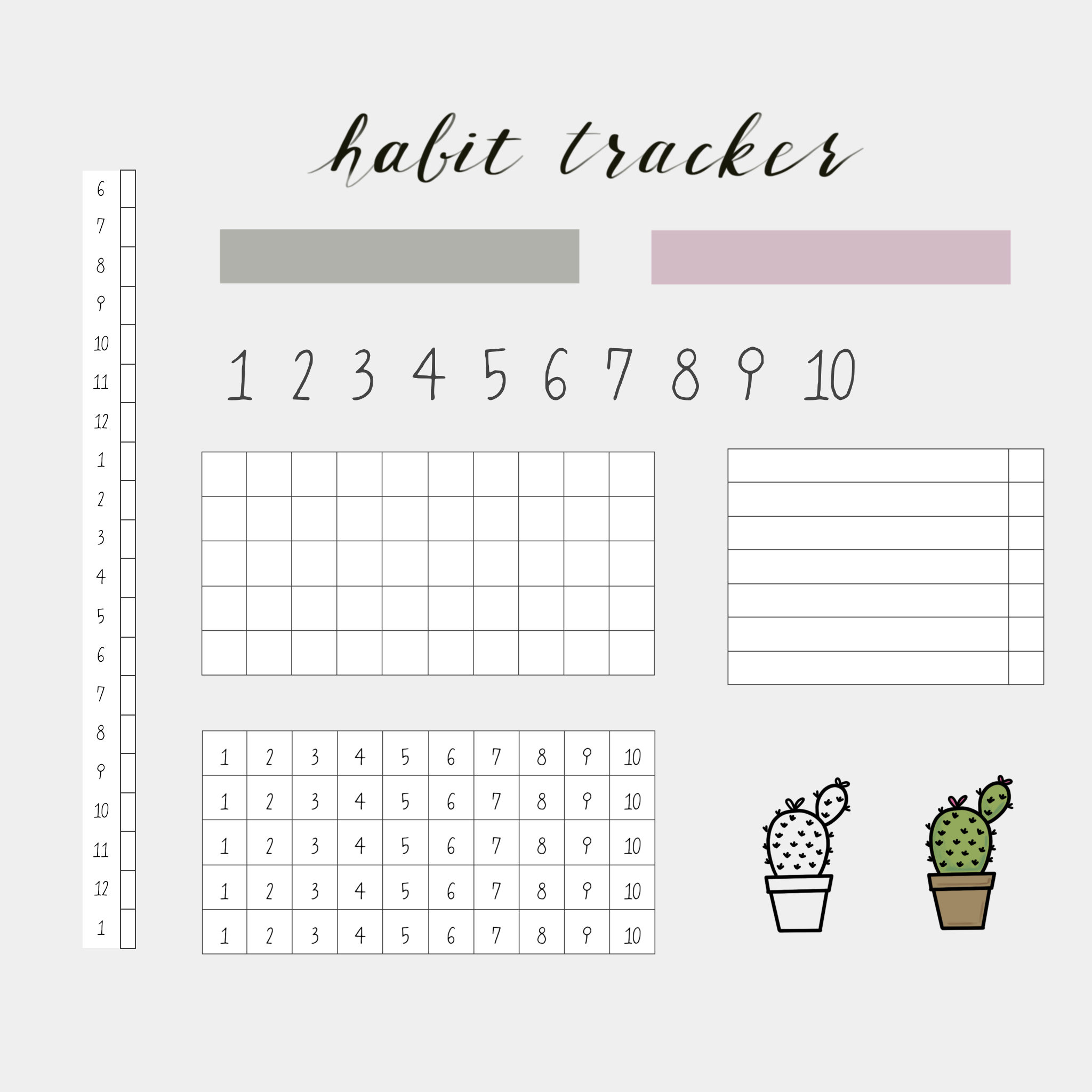 오늘 공유하려고 하는 해빗트래커 스티커는 불렛저널에 이용해도 좋지만, 일반 다이어리에 붙여도 좋을 것 같습니다. 왼쪽에 있는 타임테이블은 시간 부분에 하이라이터로 표시하면서 사용하면 됩니다. 그리고 맨 위에 영문 글귀 아래에 있는 마스킹 테이프는 반투명입니다. 그 아래에 있는 빈 모눈종이에는 숫자를 적을 수 있습니다. 자신이 원하는 만큼의 횟수를 적으면 좋을 것 같습니다. 그 아래에 숫자가 적혀 있는 것을 사용해도 됩니다 :)